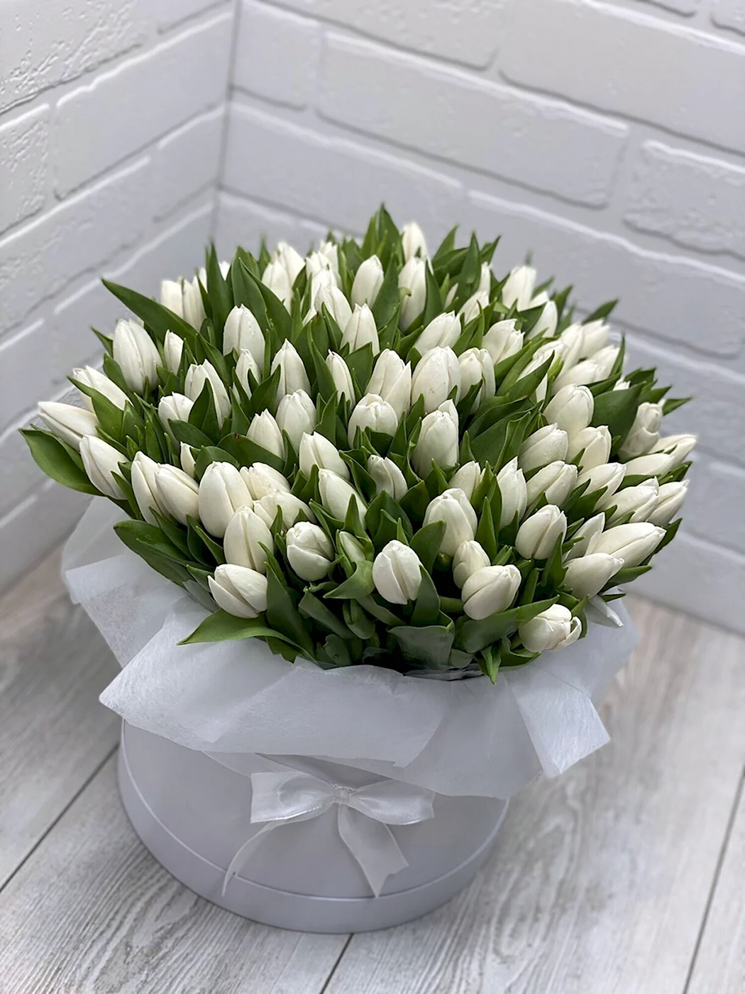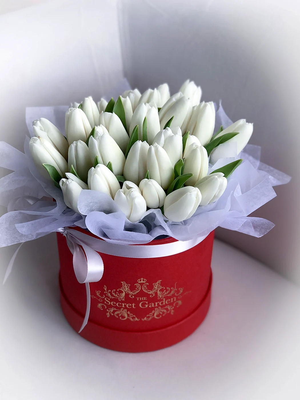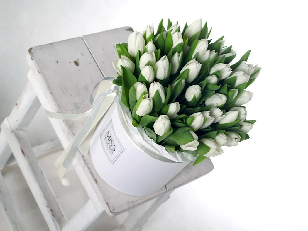 Белые тюльпаны в коробке — великолепное проявление роскоши и нежности. Посмотрите наши картинки, чтобы насладиться их изящной красотой и изумлительной свежестью.