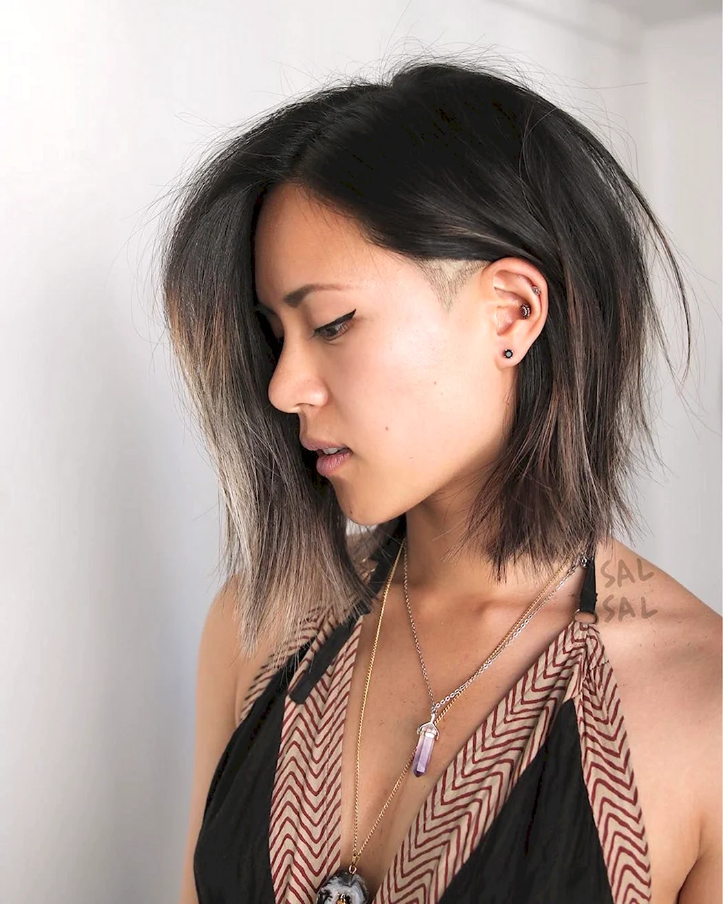 Стрижка с выбритыми висками женская на средние волосы