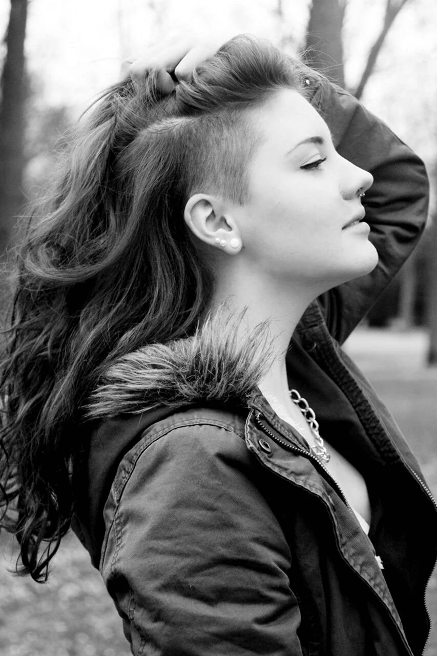 Выбритый висок на длинные волосы