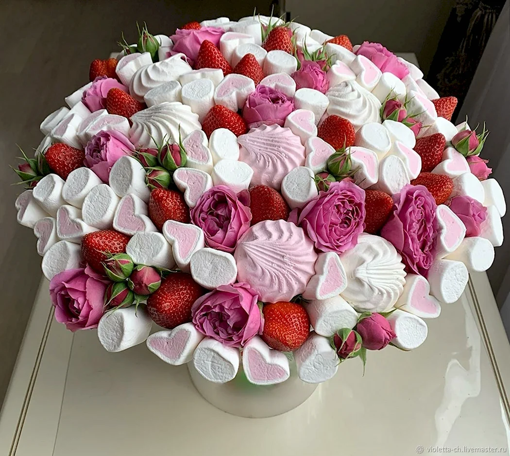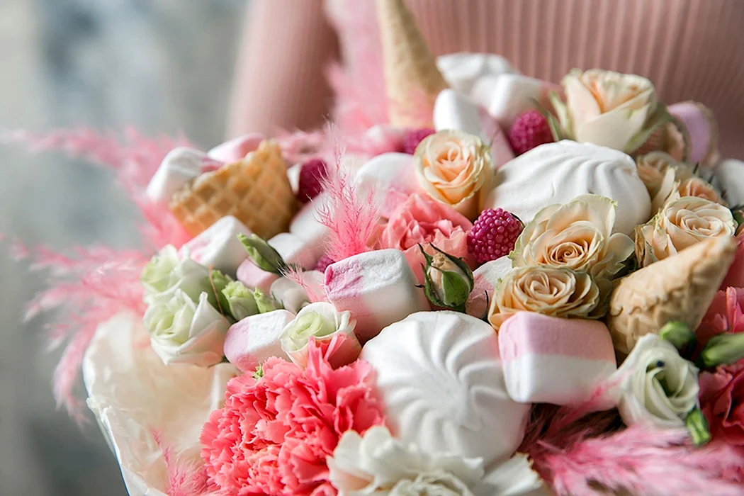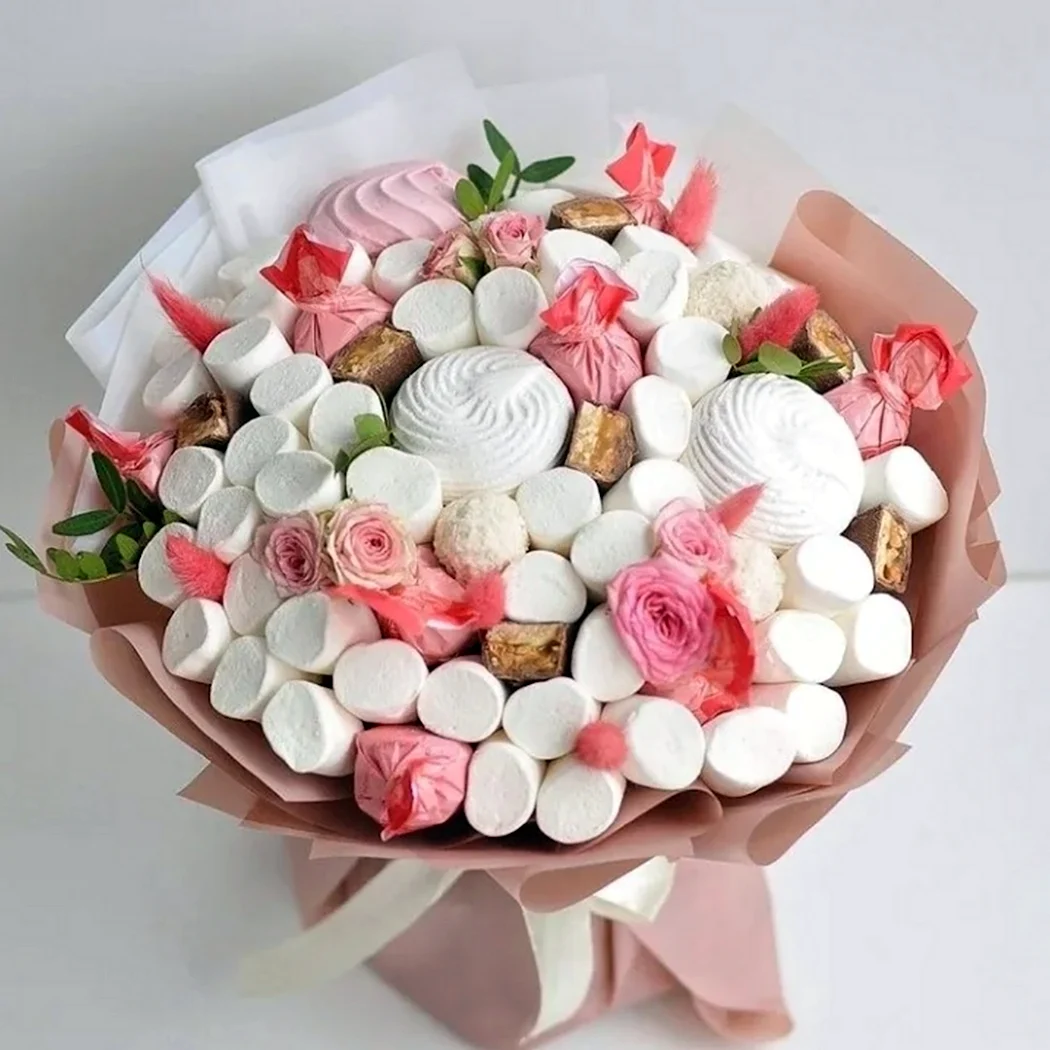 Прекрасные букеты из зефира, невероятно нежные и милые композиции для любого праздника!