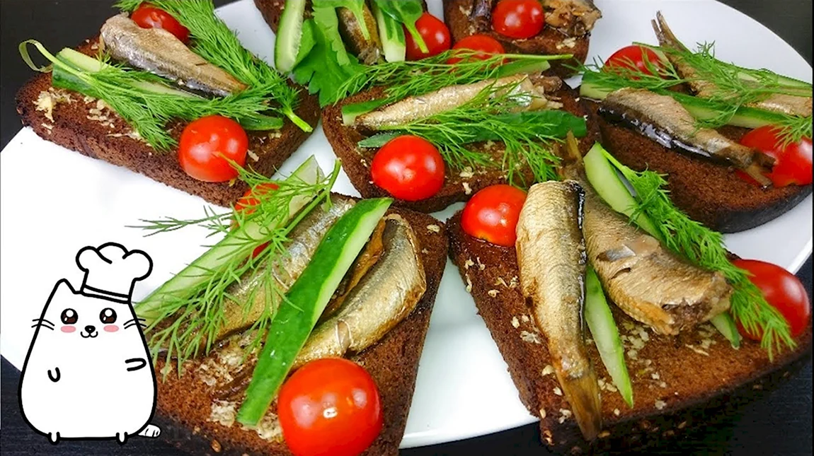 Бутерброды со шпротами — это вкусное блюдо, состоящее из румяного хлеба и ароматных шпрот. Посмотри на фото и картинки этих аппетитных закусок и попробуй приготовить самостоятельно.