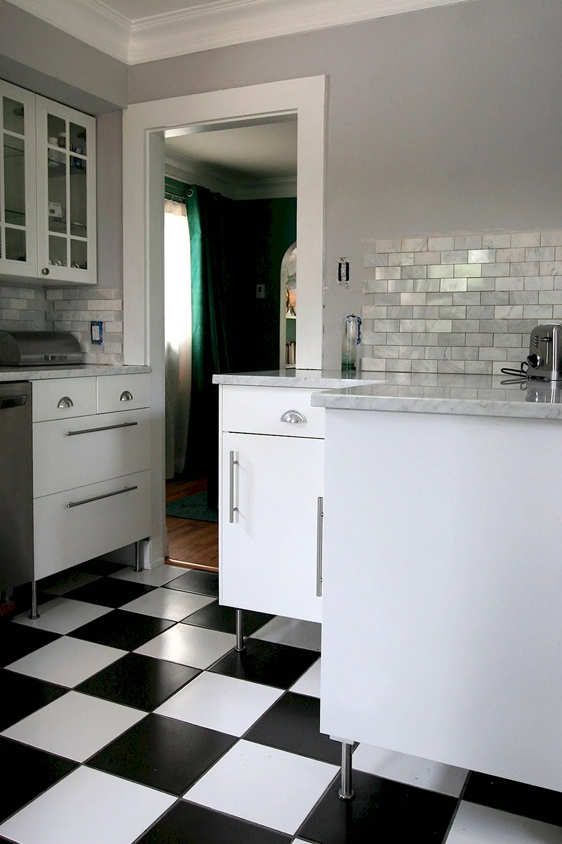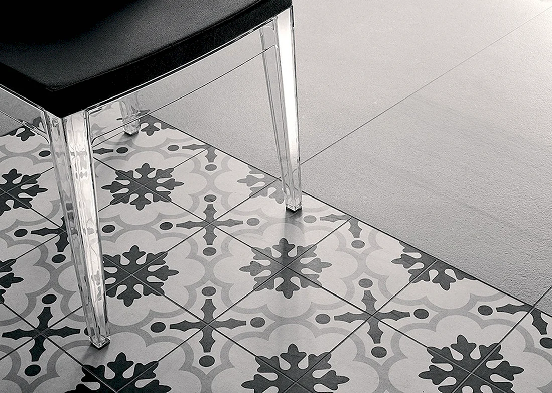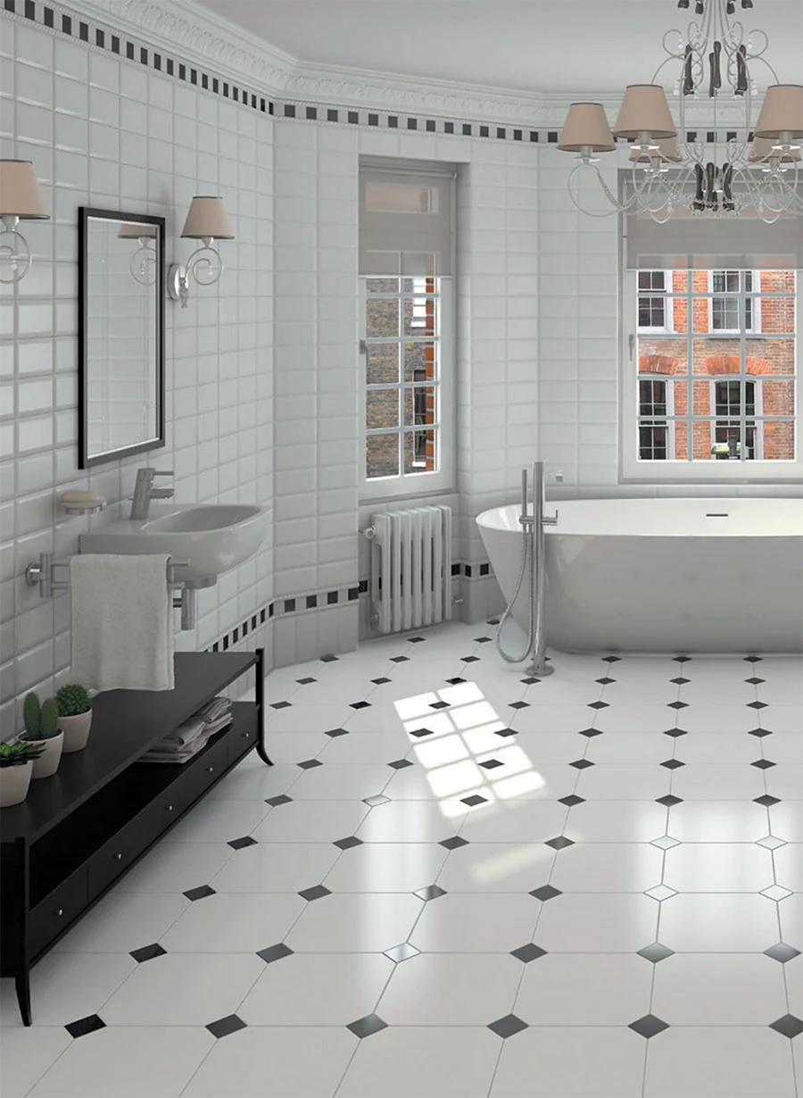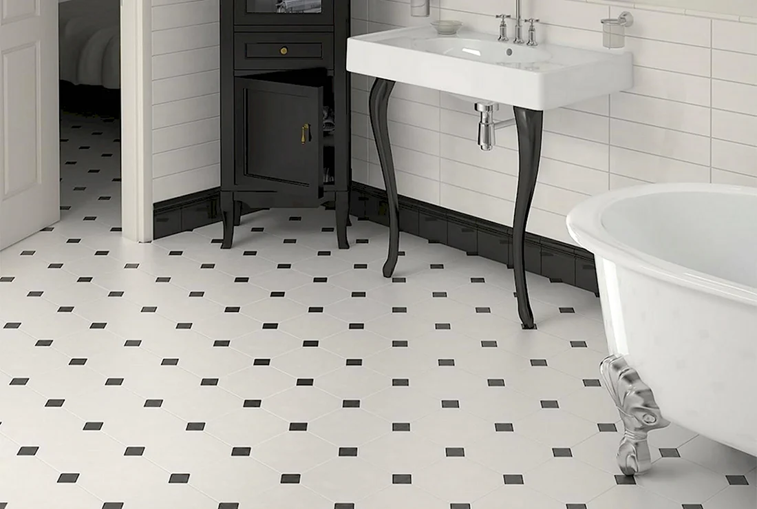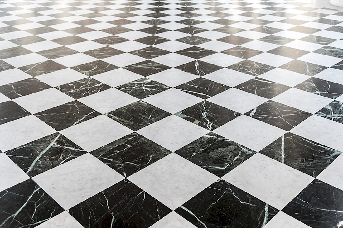 Такие черно-белые узоры на полу придают интерьеру стиль и элегантность.