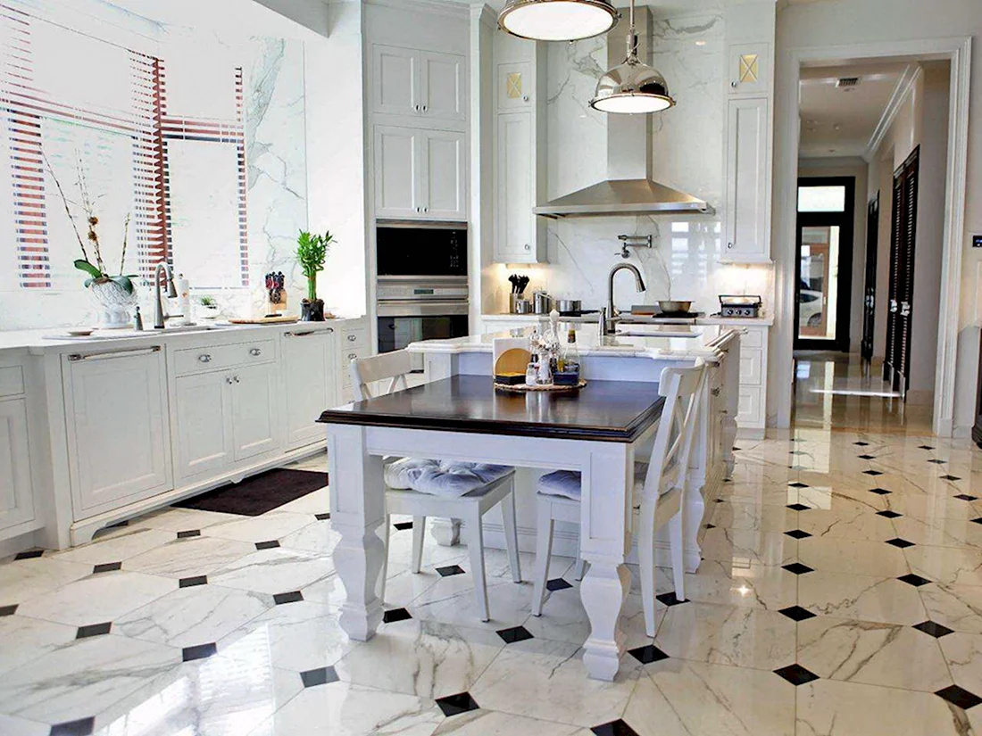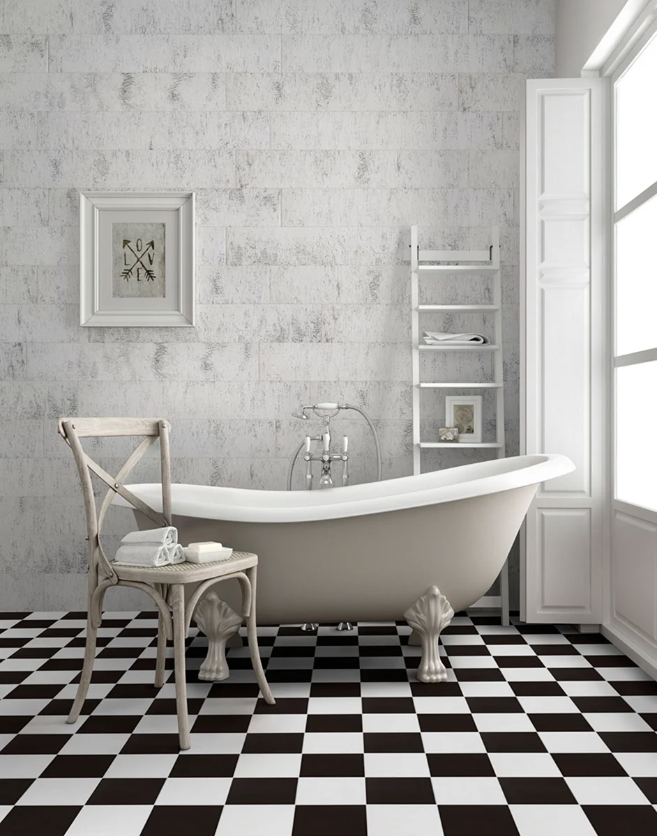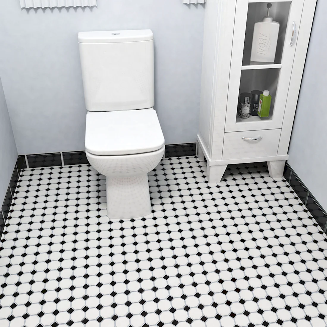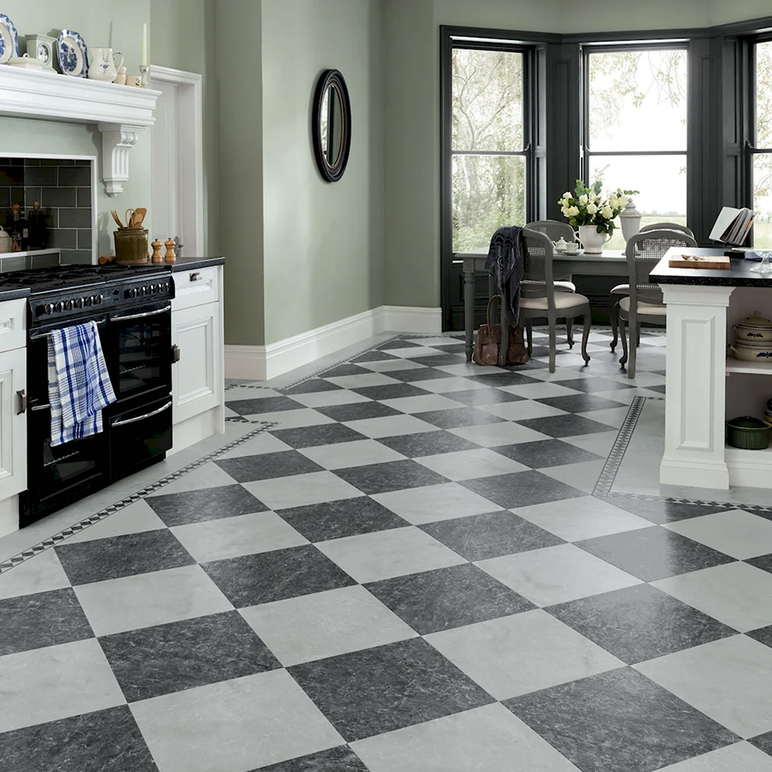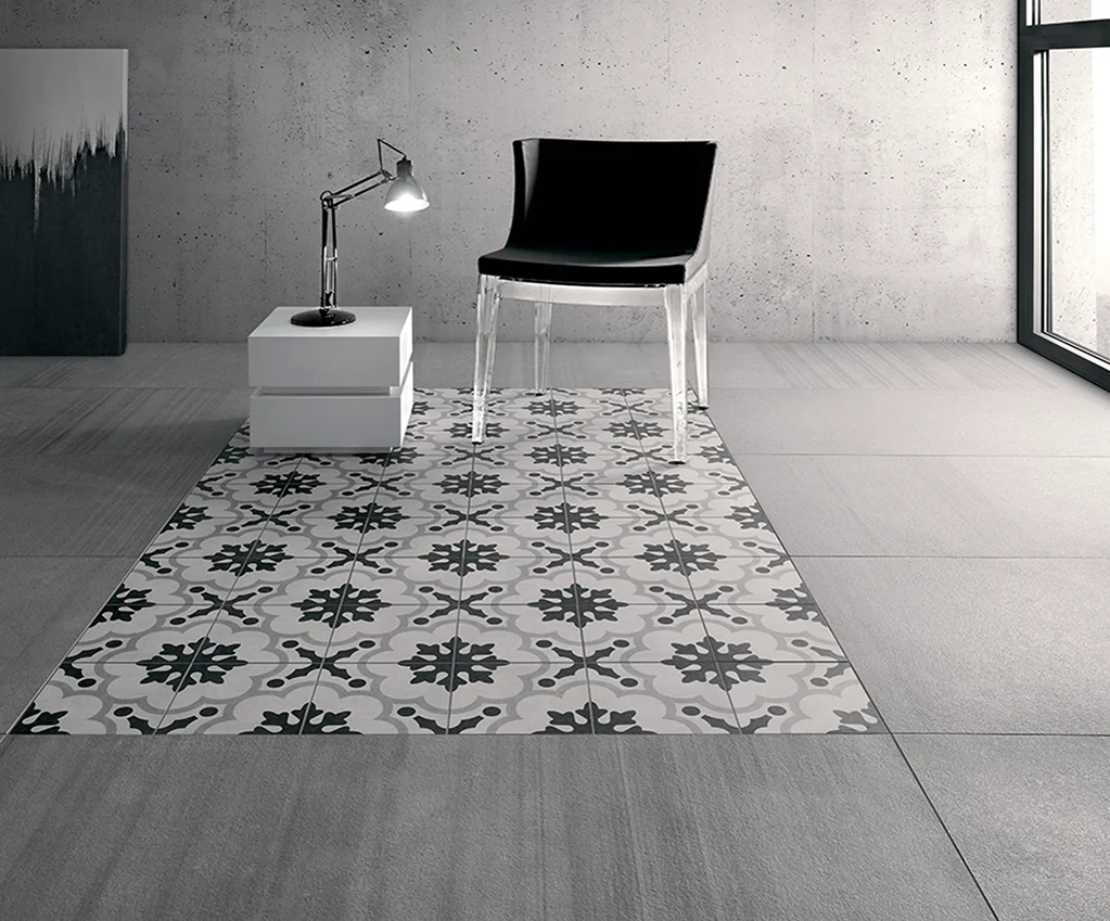 Такие черно-белые узоры на полу придают интерьеру стиль и элегантность.