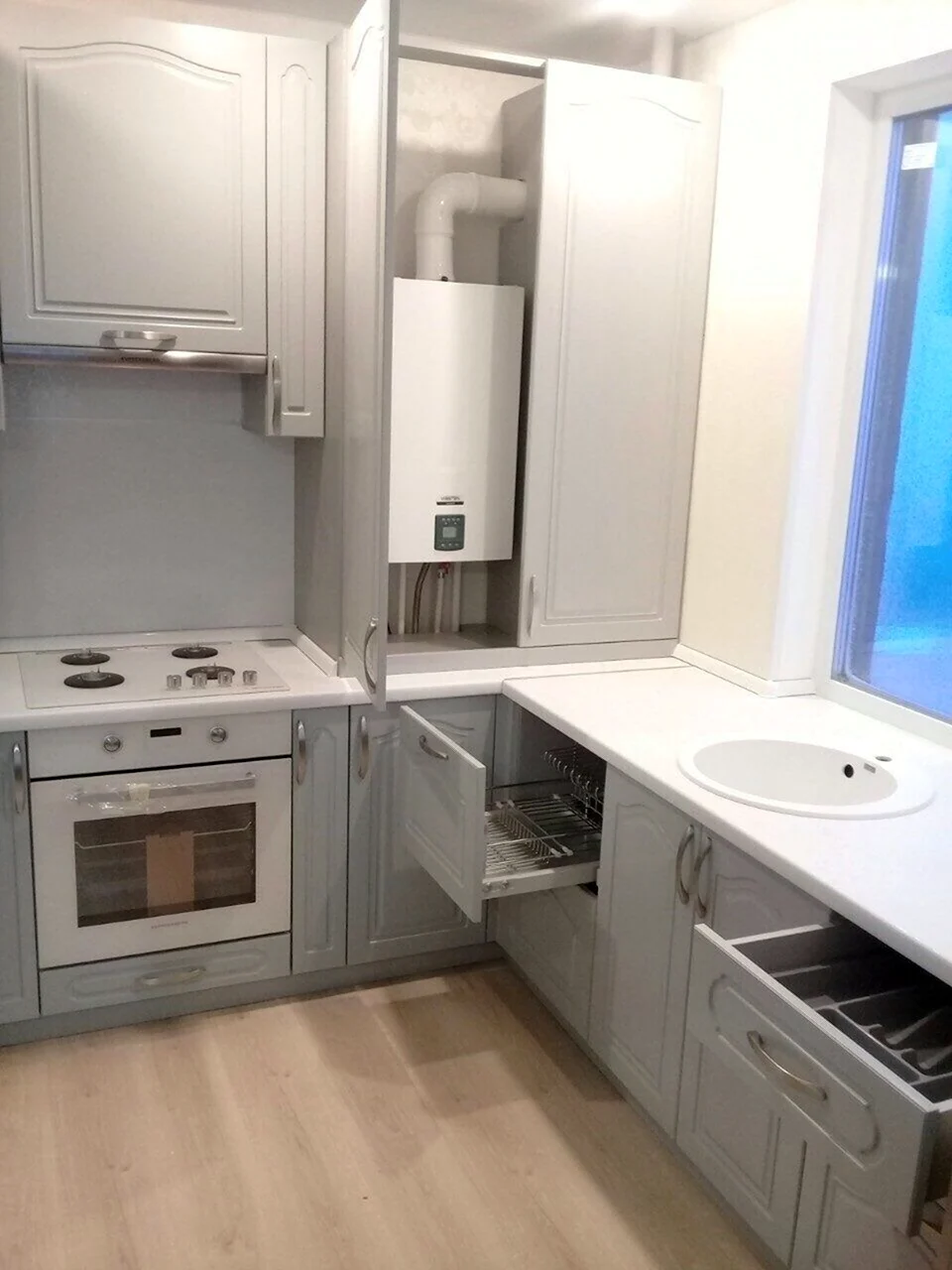 Отличные идеи для маленькой кухни, как легко вписать колонку в дизайн и сделать пространство функциональным и стильным.