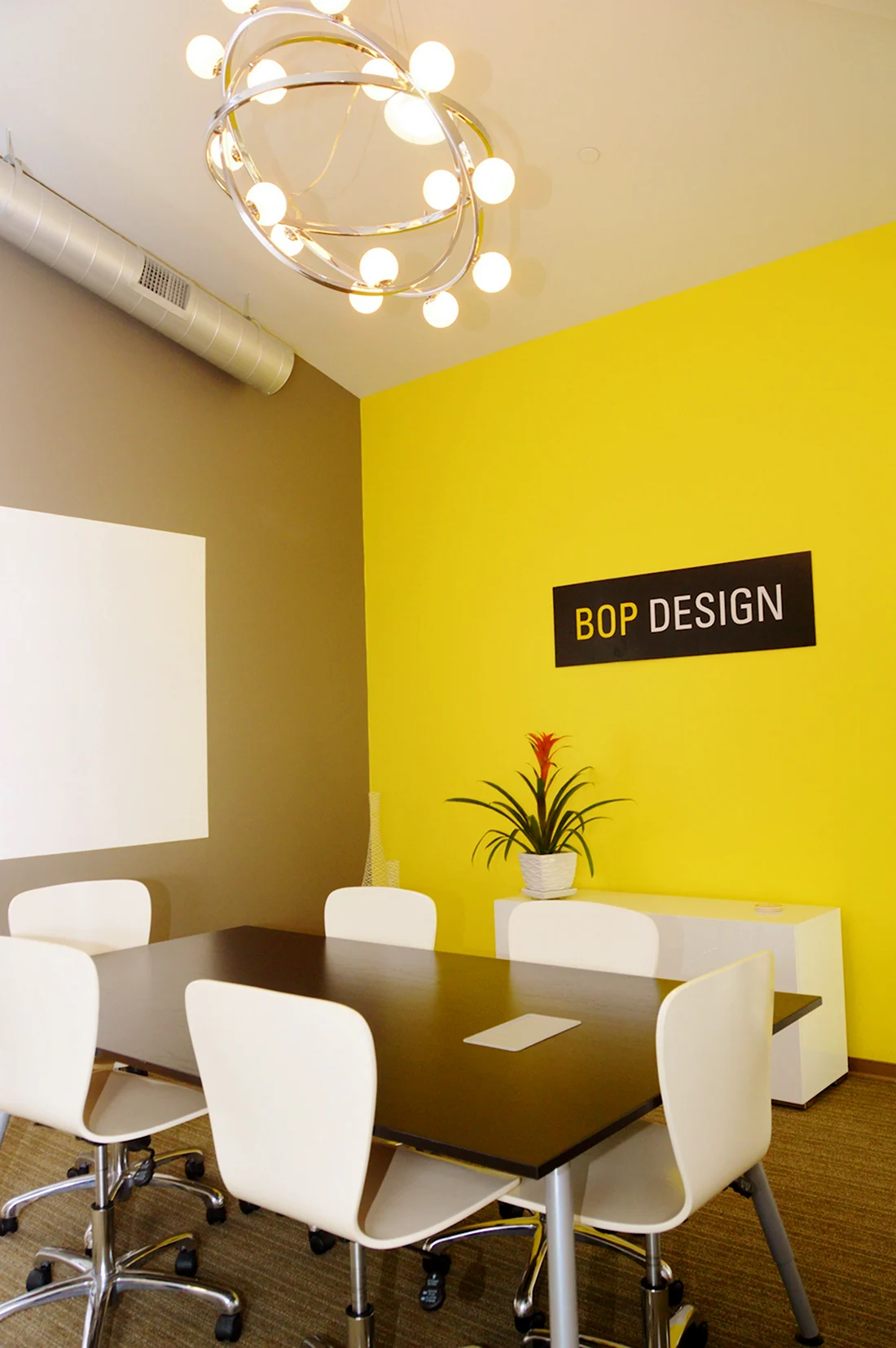 Нежный оттенок стен придает офису уют и спокойствие, создавая идеальную атмосферу для работы и творчества.