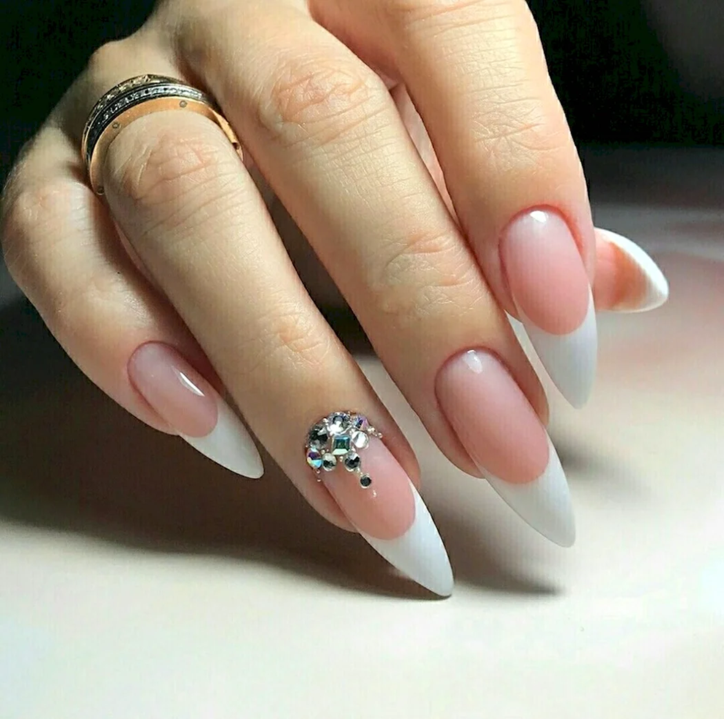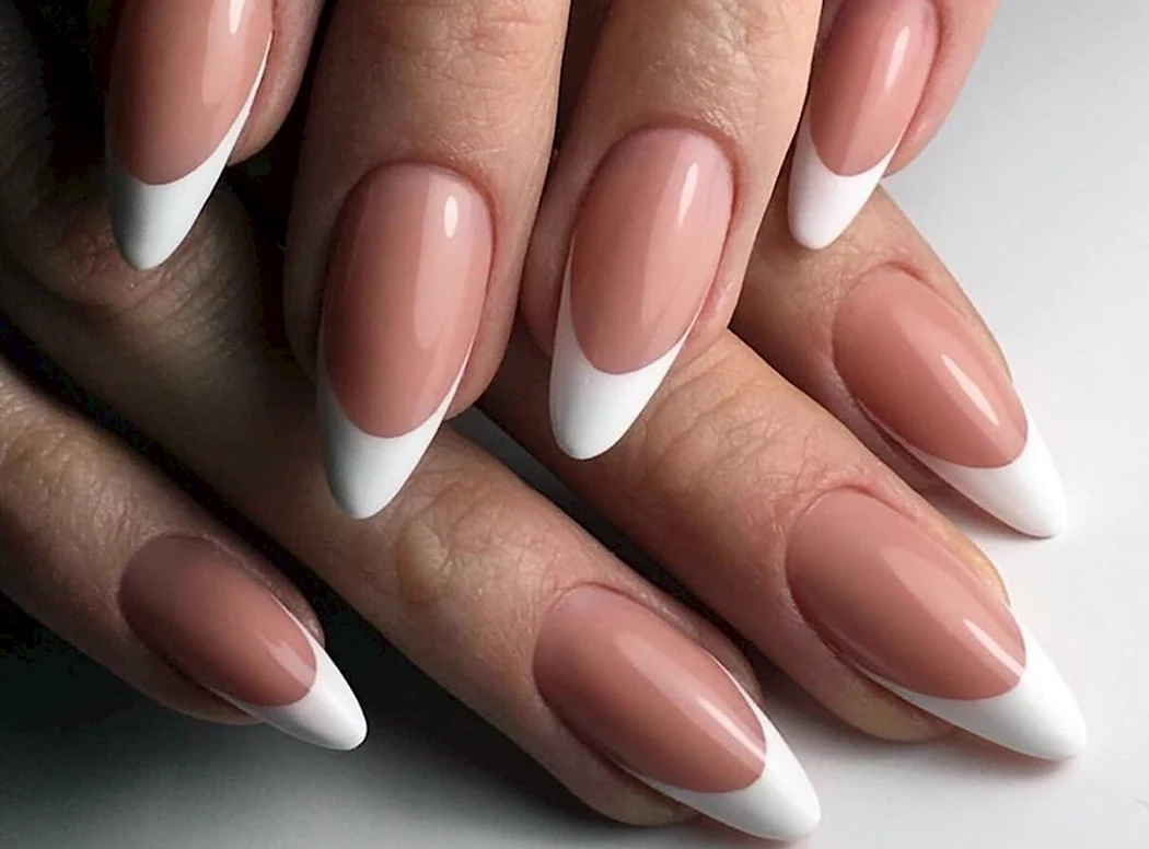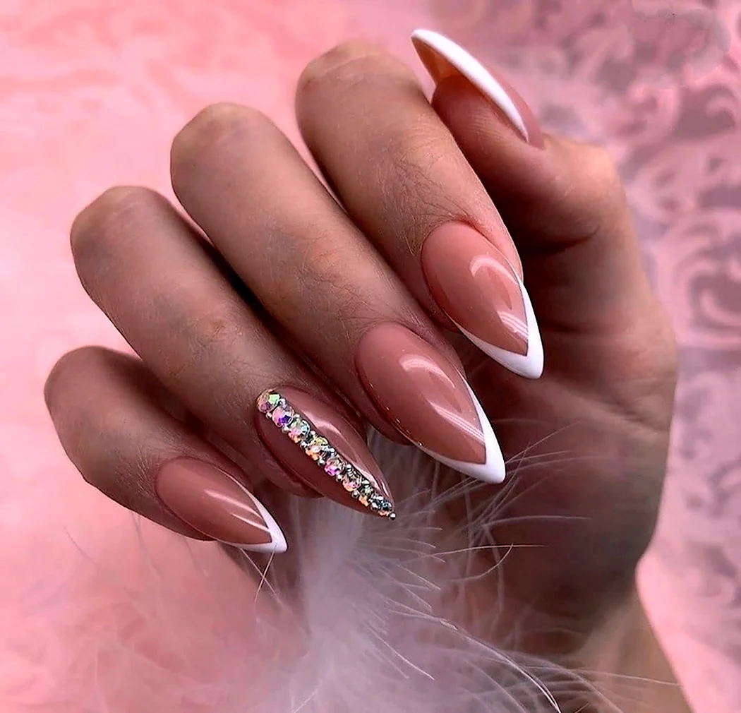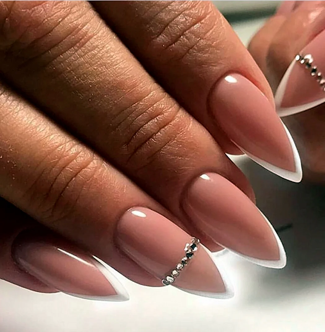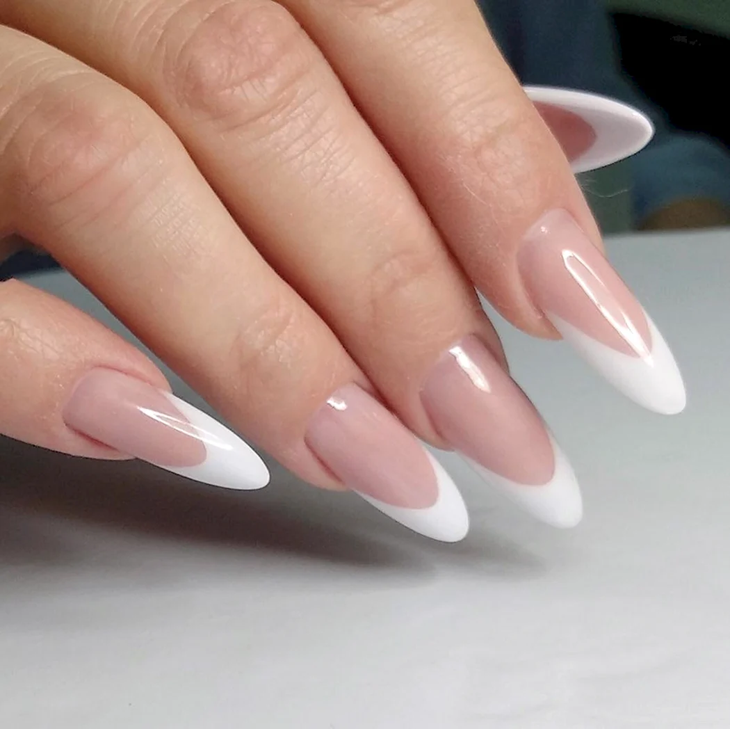 Как же элегантно выглядят длинные миндальные ногти в стильном дизайне Френч!