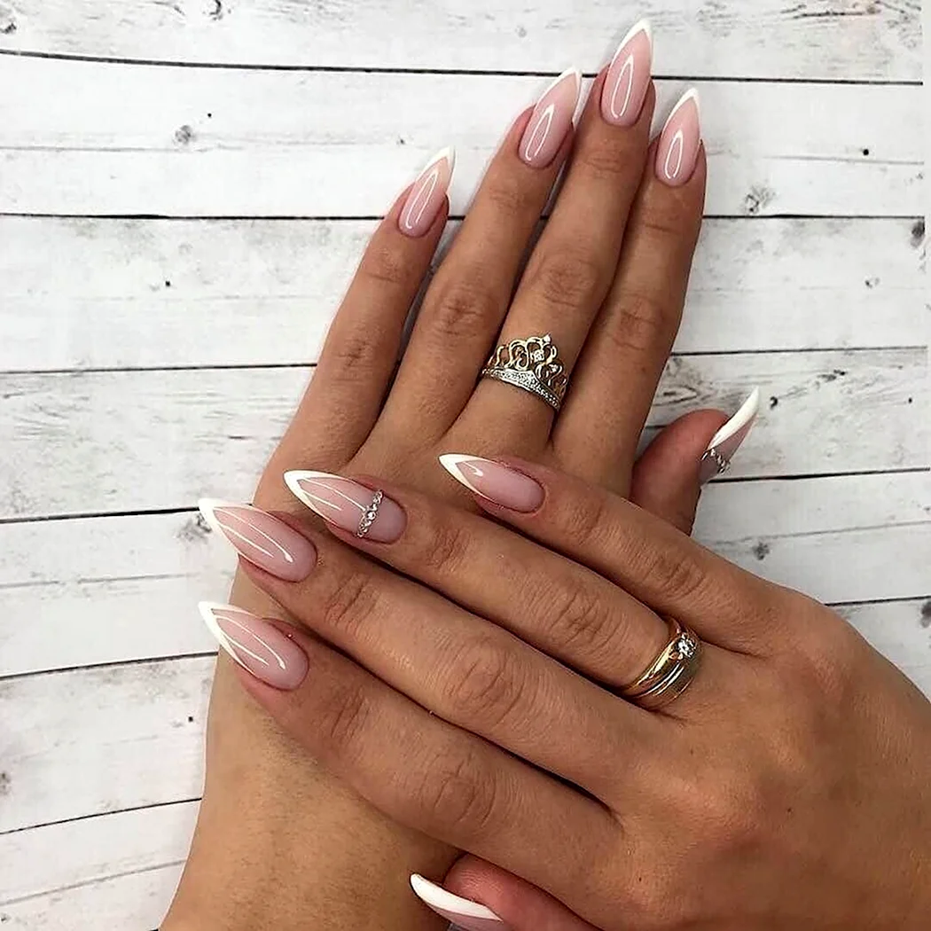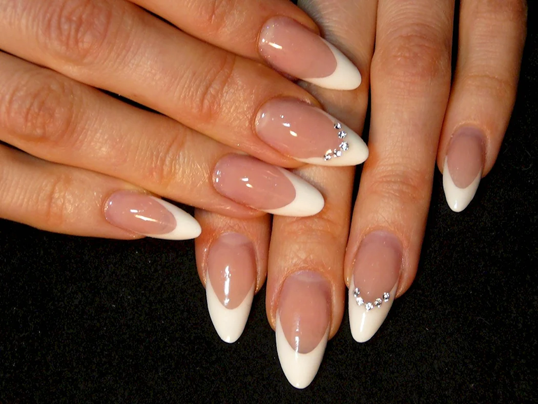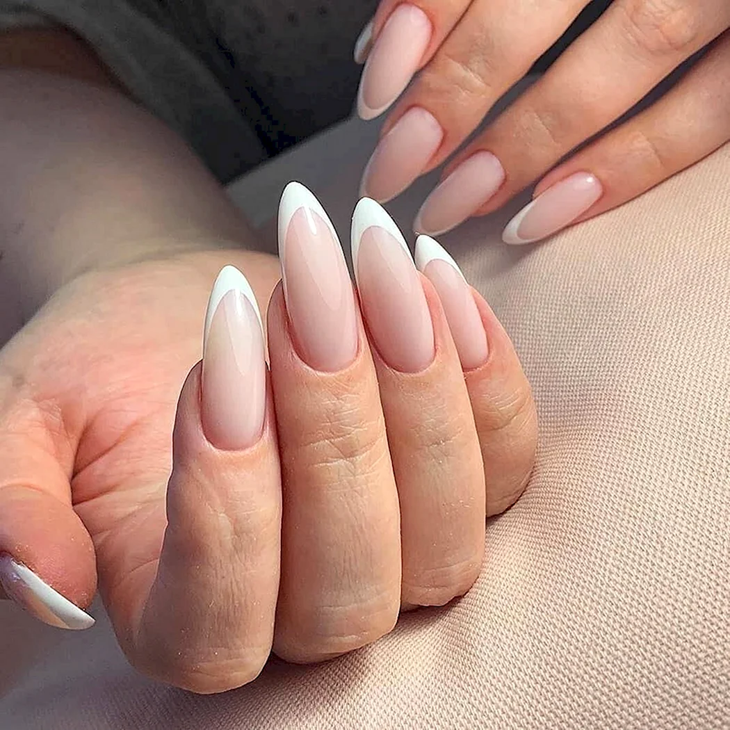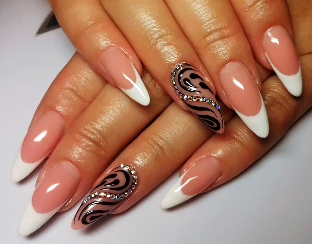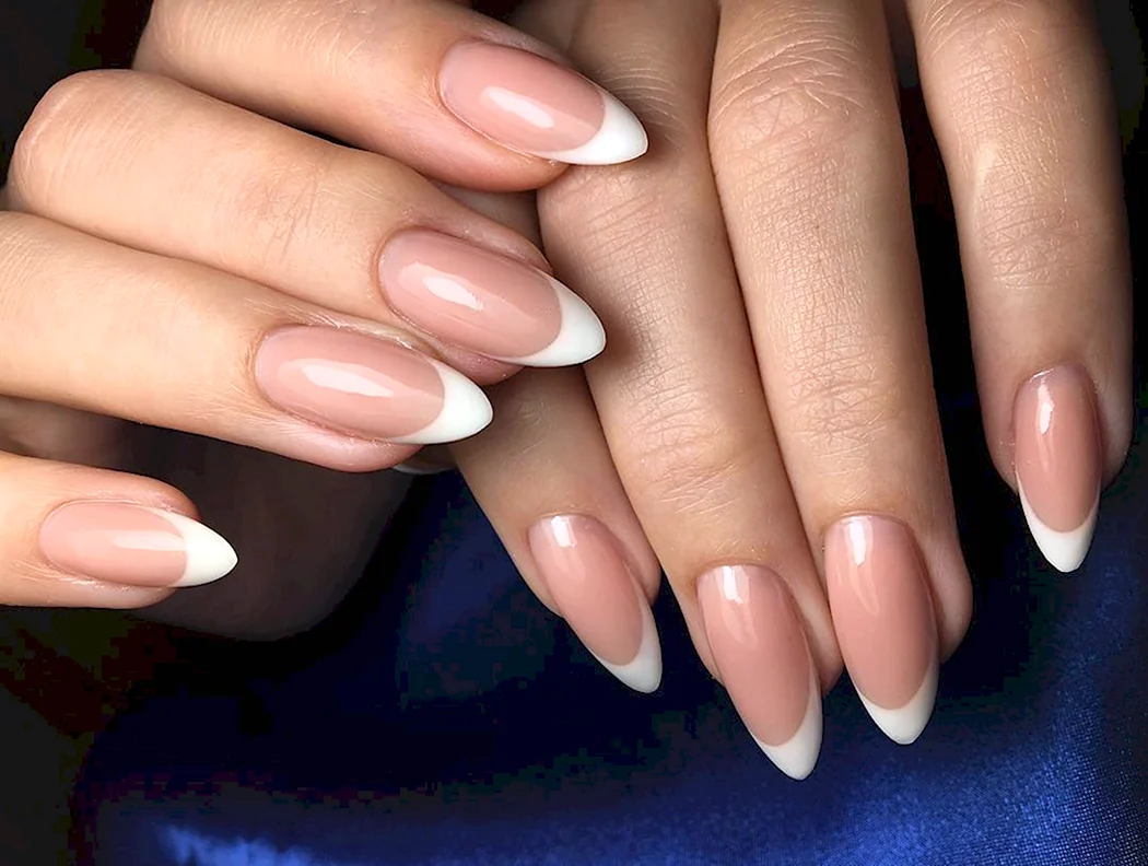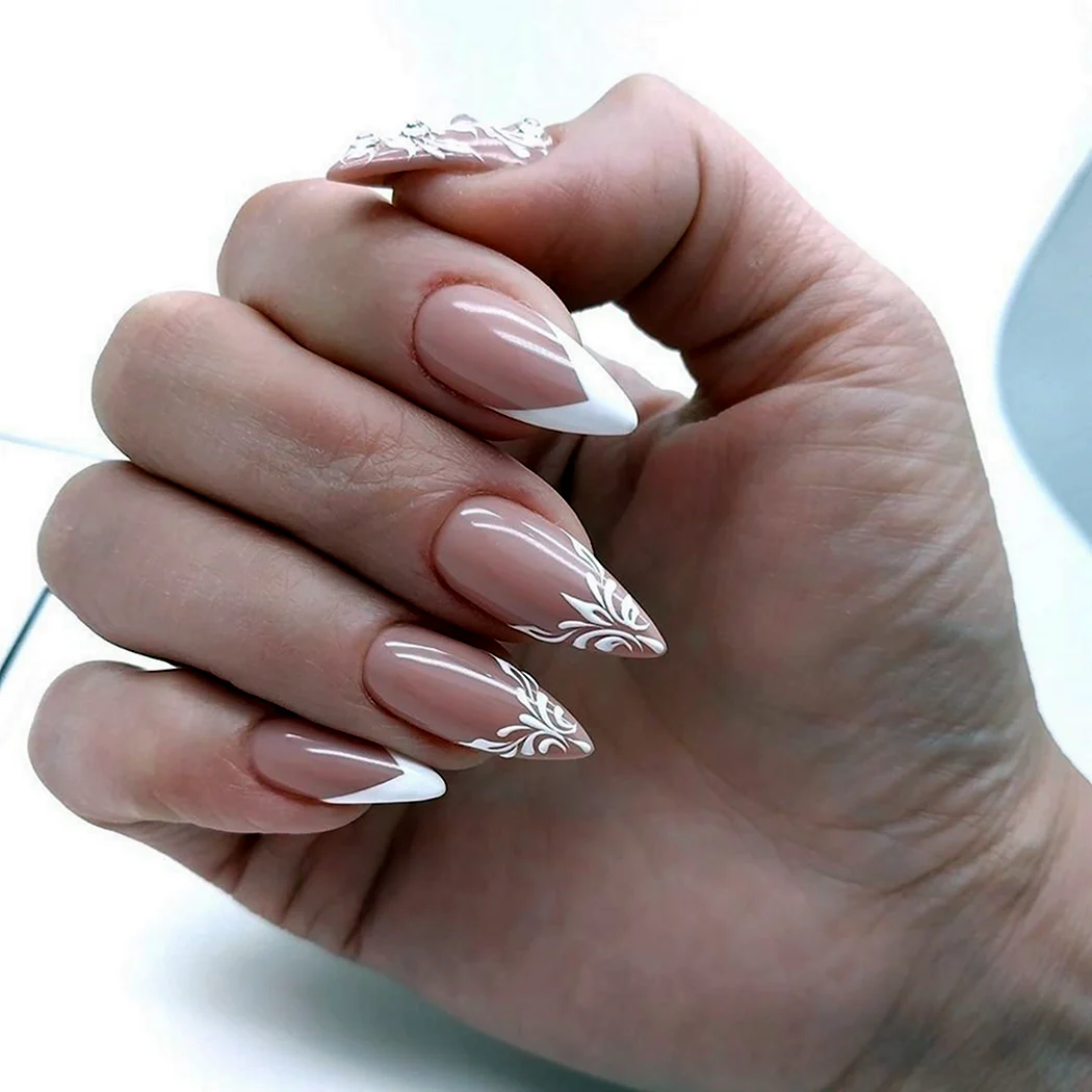 Как же элегантно выглядят длинные миндальные ногти в стильном дизайне Френч!