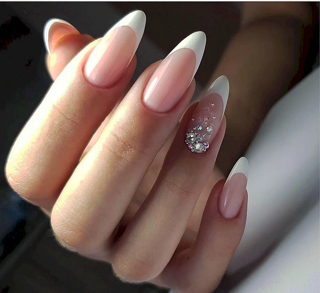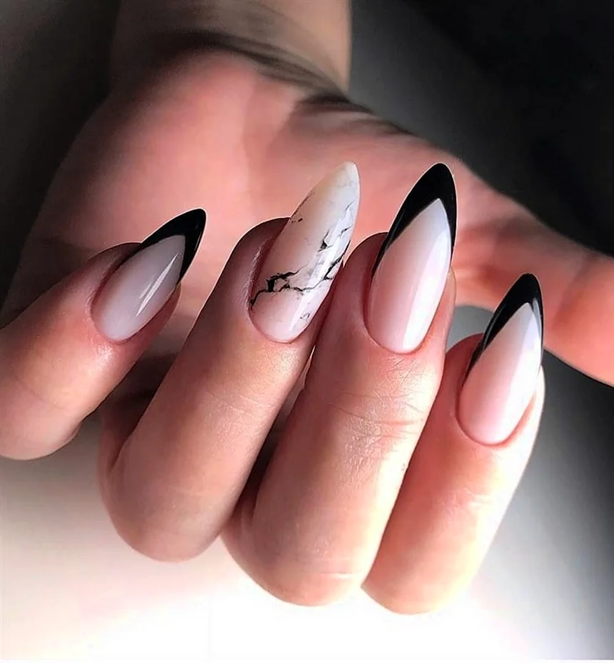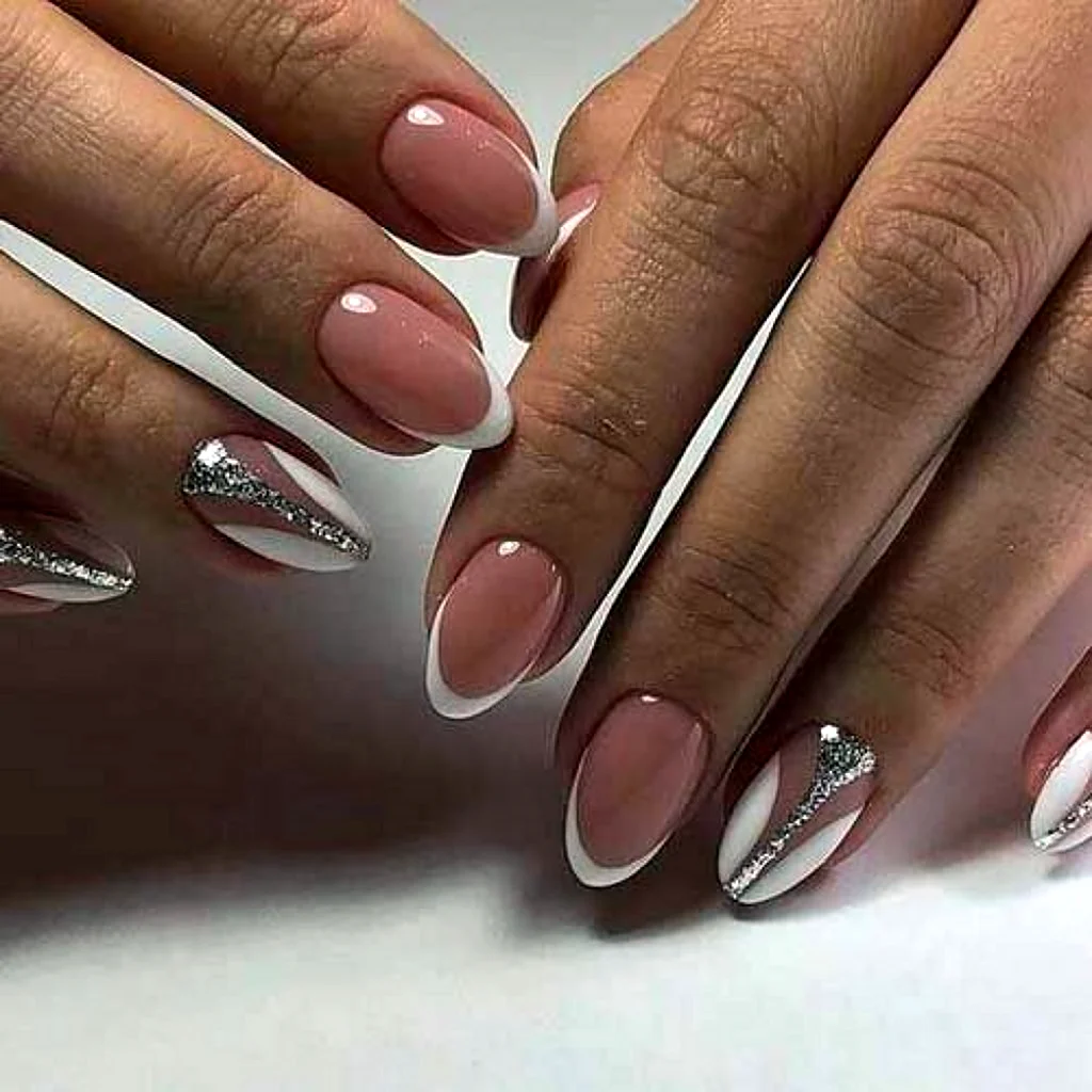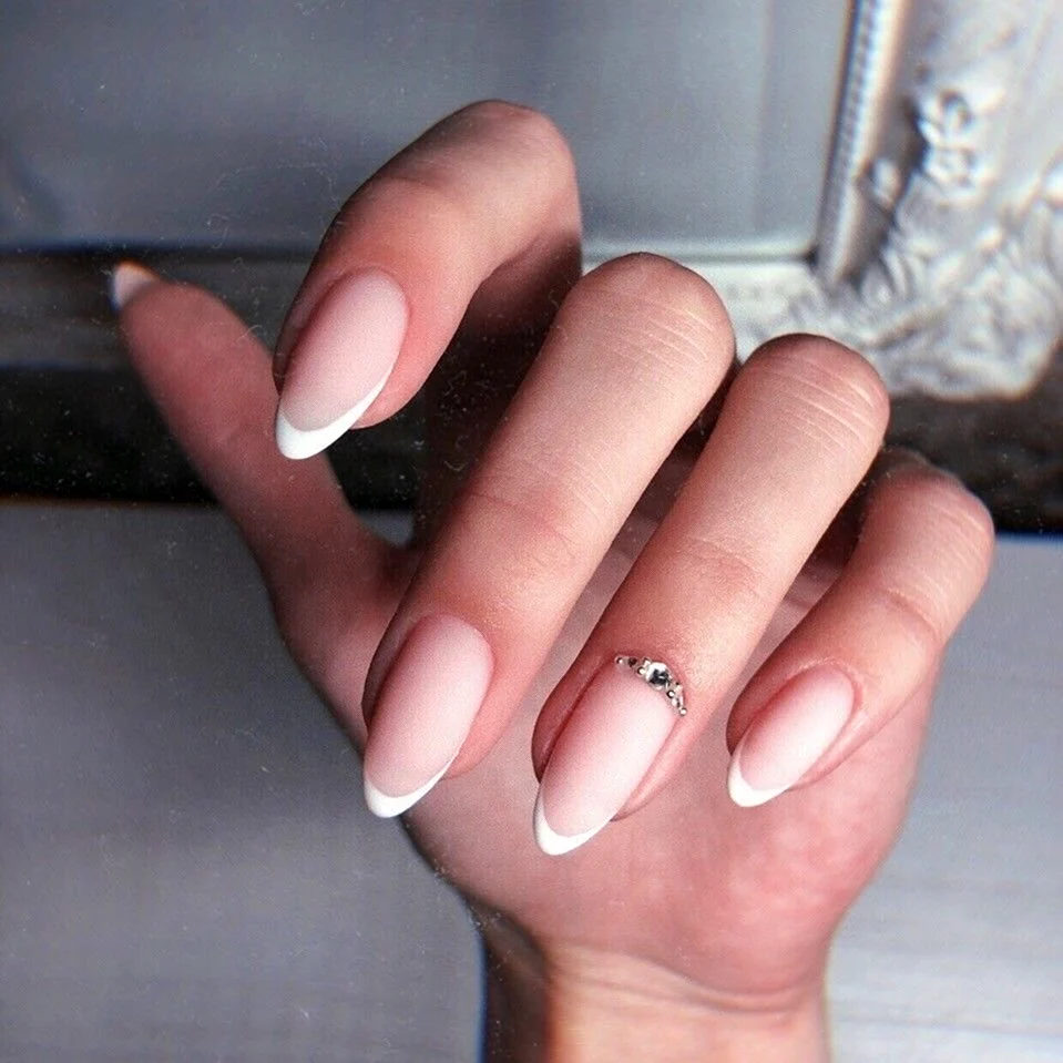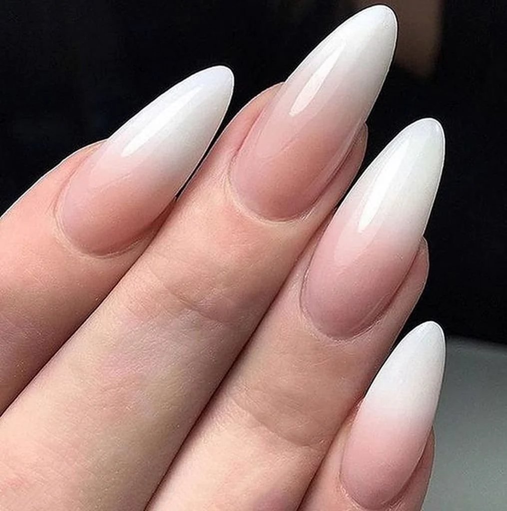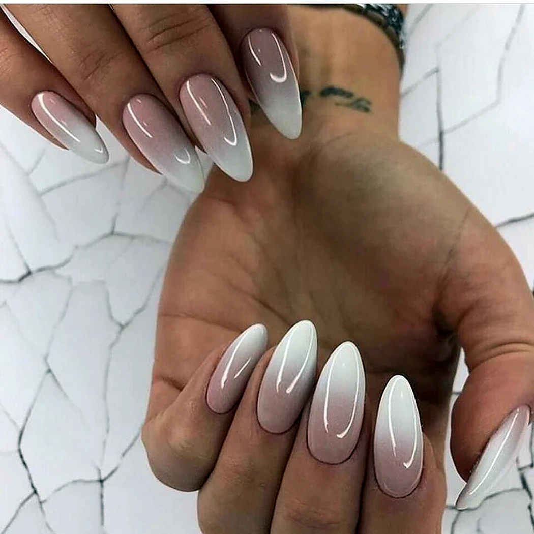 Как же элегантно выглядят длинные миндальные ногти в стильном дизайне Френч!