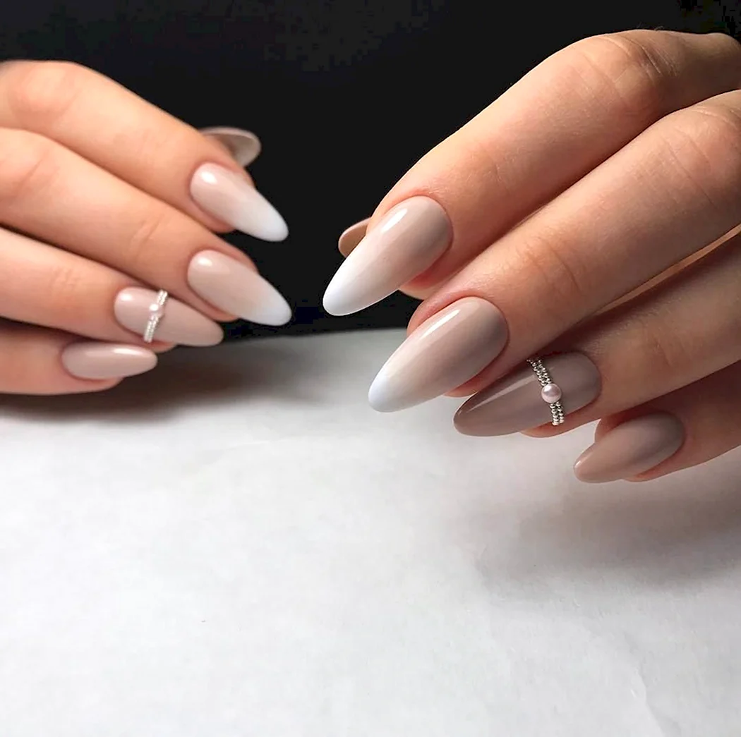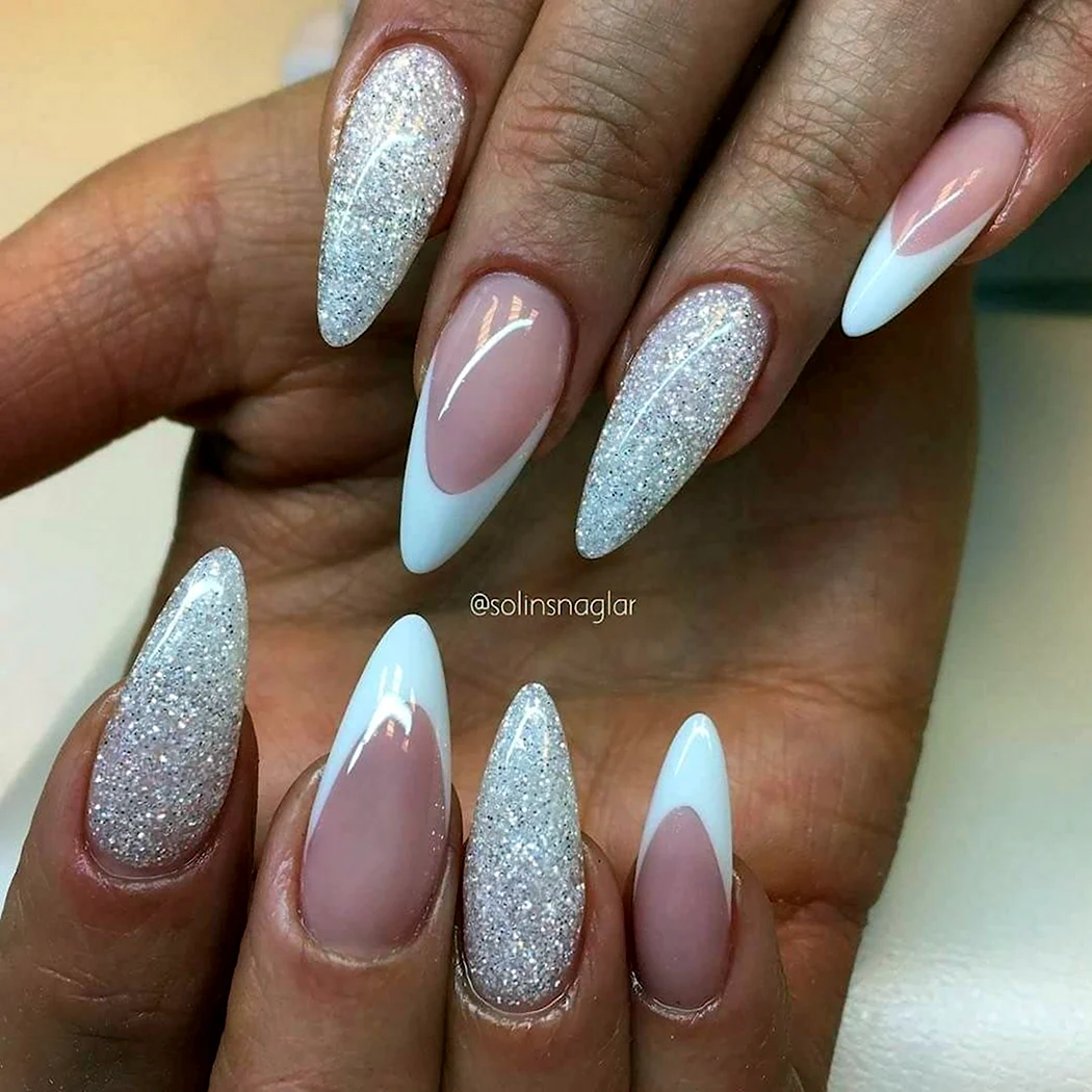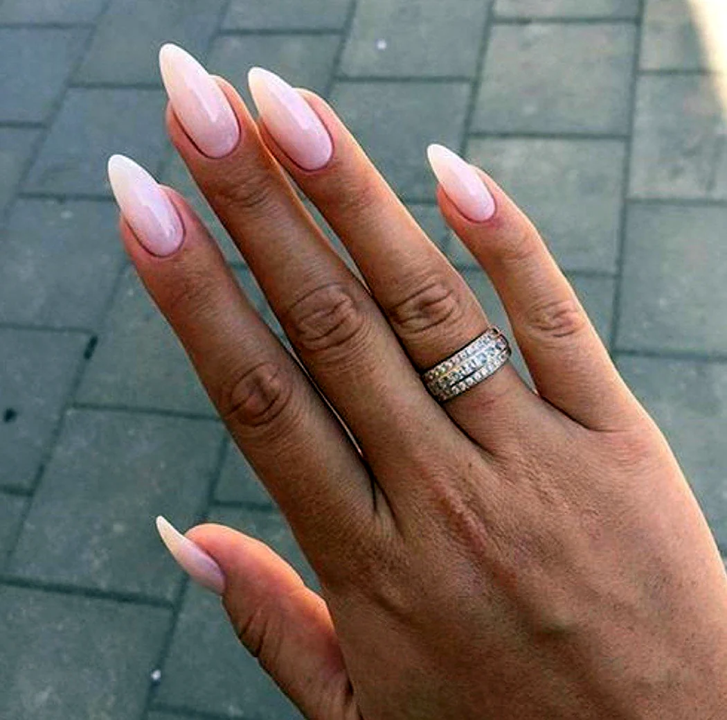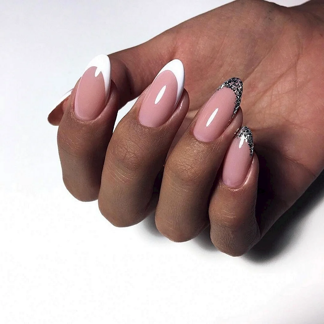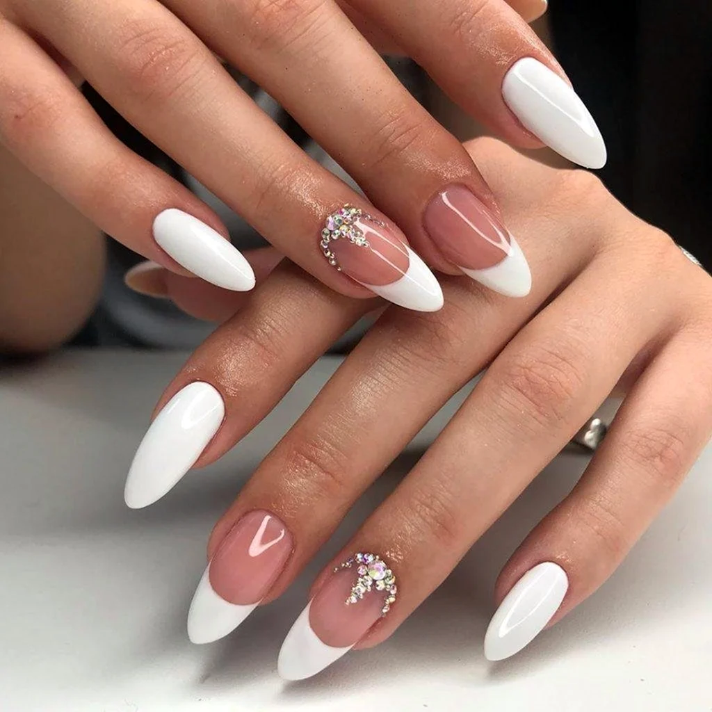 Как же элегантно выглядят длинные миндальные ногти в стильном дизайне Френч!