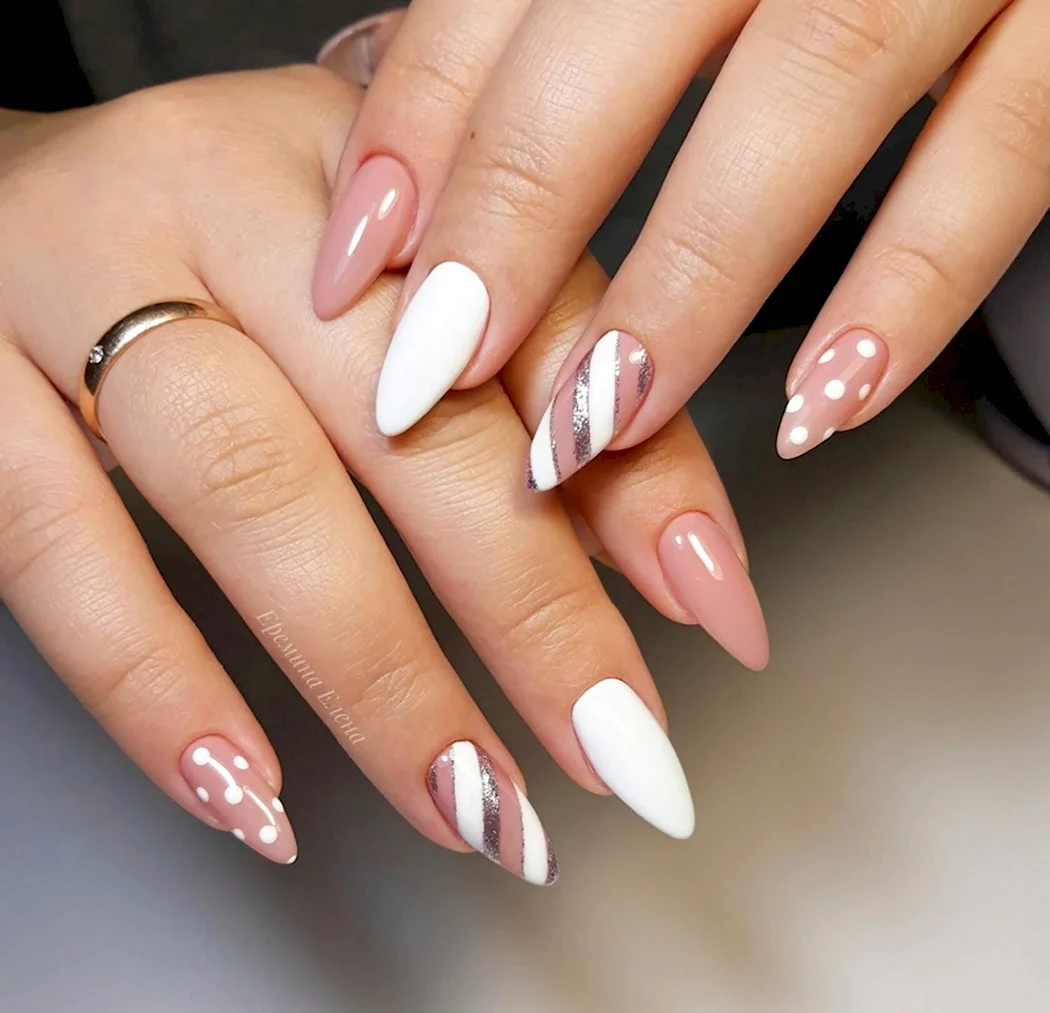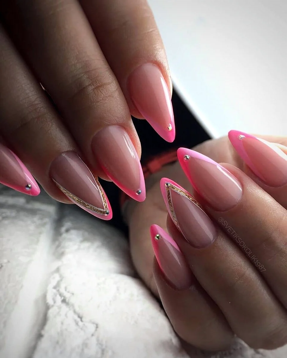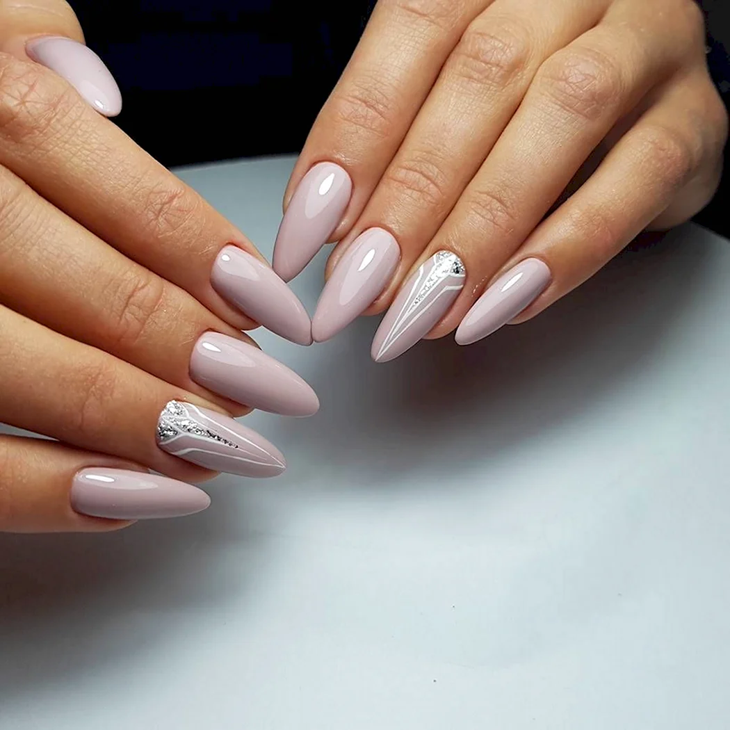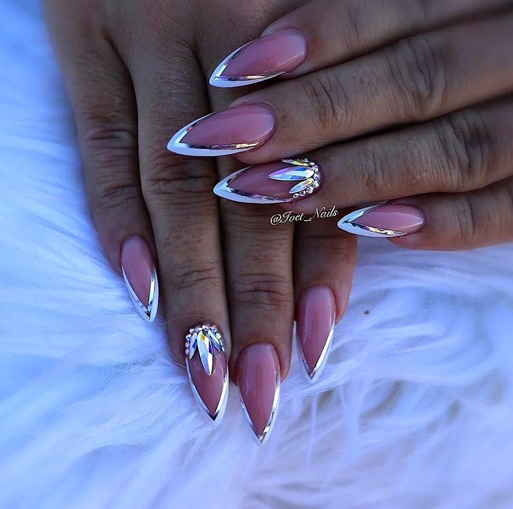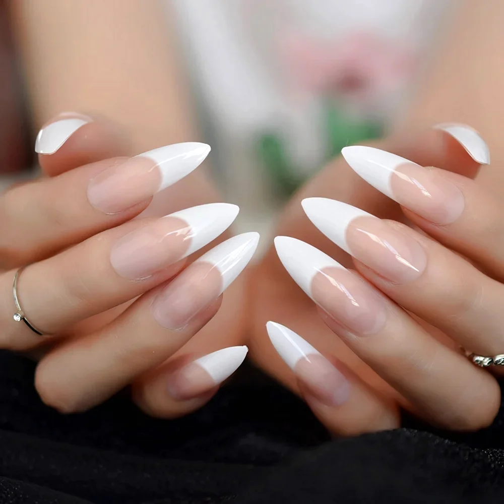 Как же элегантно выглядят длинные миндальные ногти в стильном дизайне Френч!