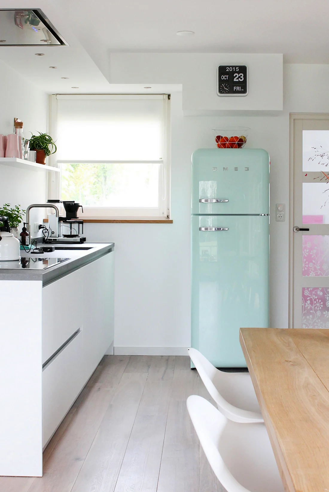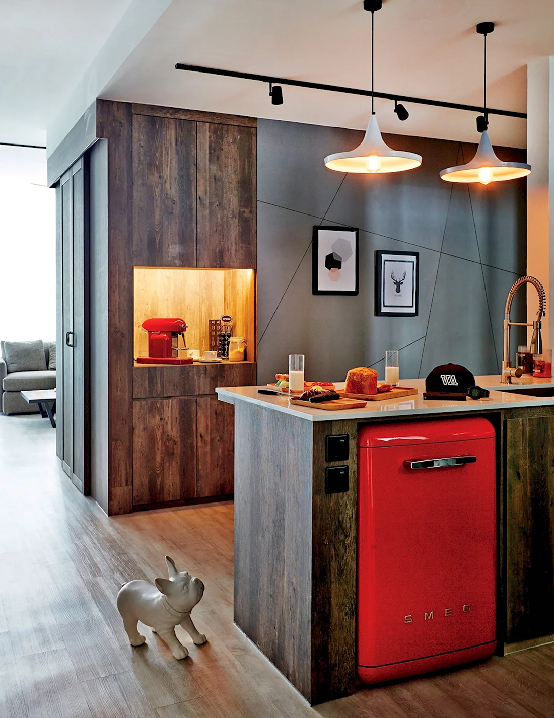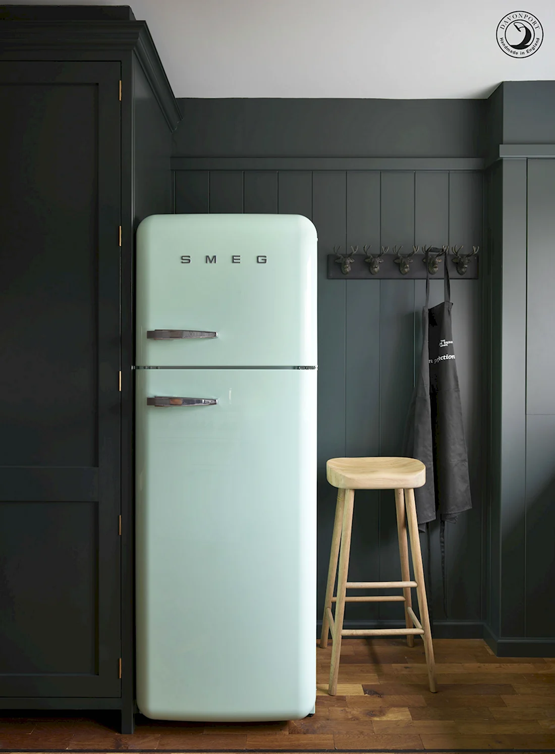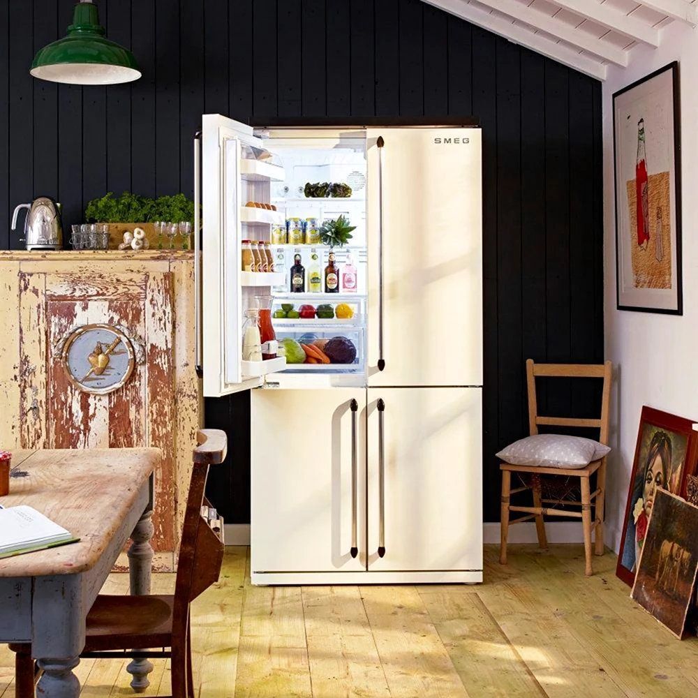 Ой, девочки, только взгляните, какой стильный холодильник вписался в интерьер! Теперь можно не только хранить продукты, но и радовать глаз каждый раз, заходя в кухню. Это просто волшебство, как он гармонично смотрится с остальной мебелью. Мечта!