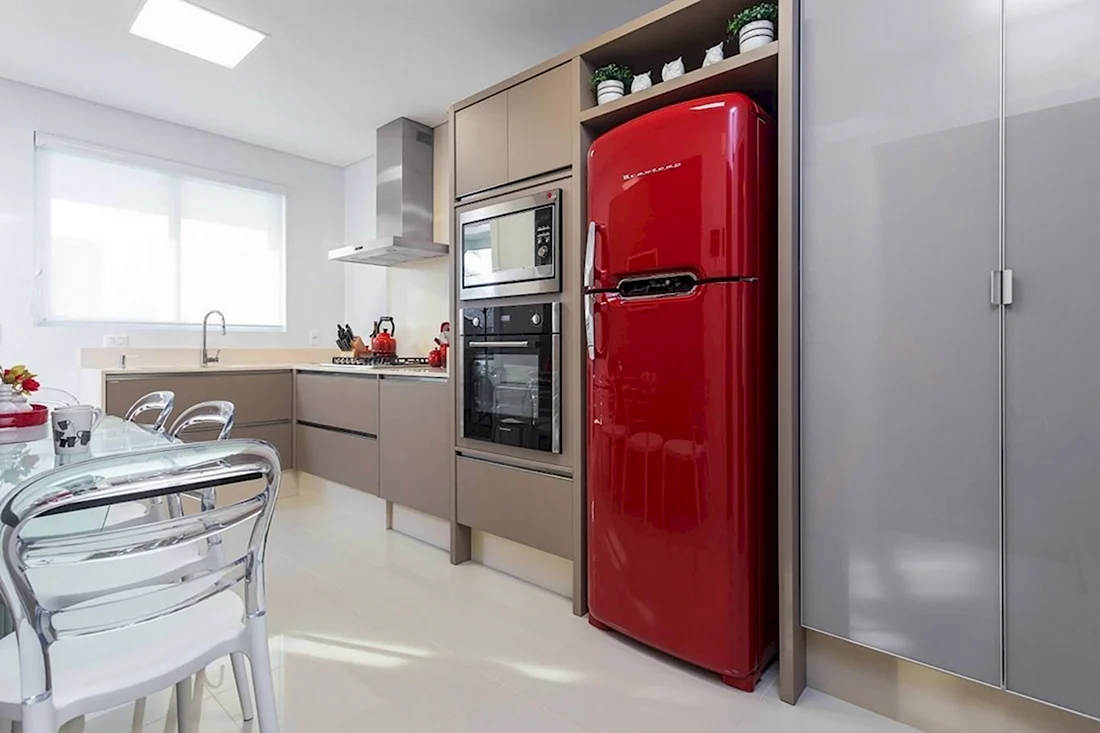 Холодильник вписывается в интерьер помещения, добавляя функциональность и стильность. Узнайте, как холодильники могут стать ярким акцентом в вашей кухне, посмотрев наши подборки картинок.