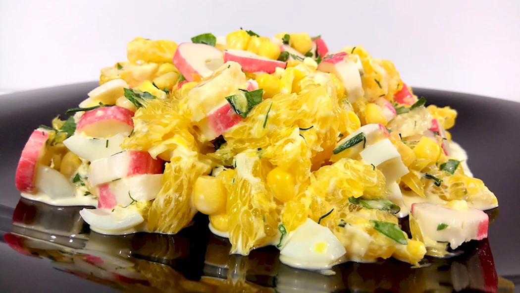Салат по королевски с апельсинами и крабовыми палочками