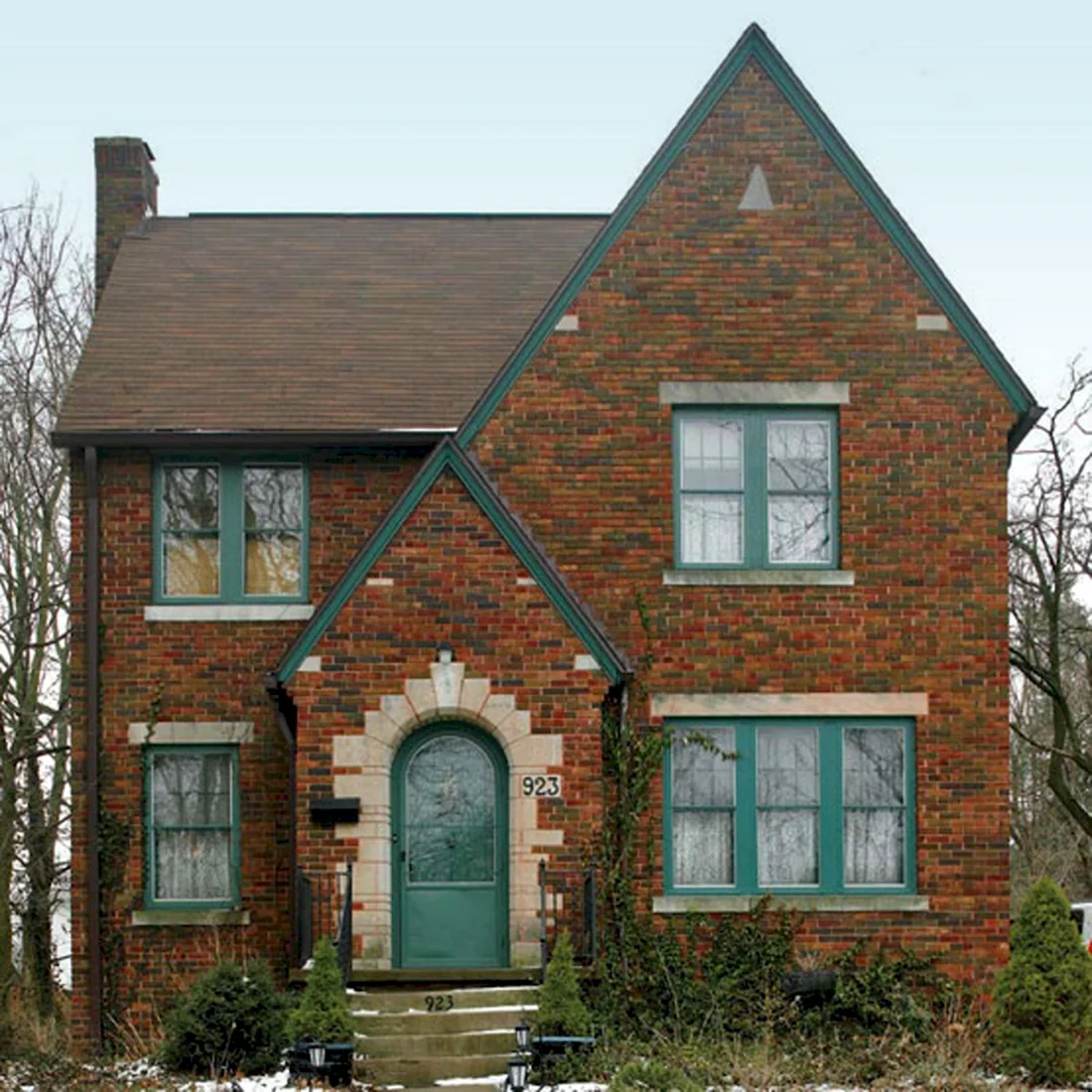 Дом архитектура в английском Тюдор стиле темный кирпич