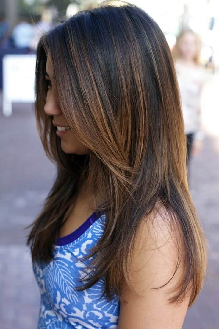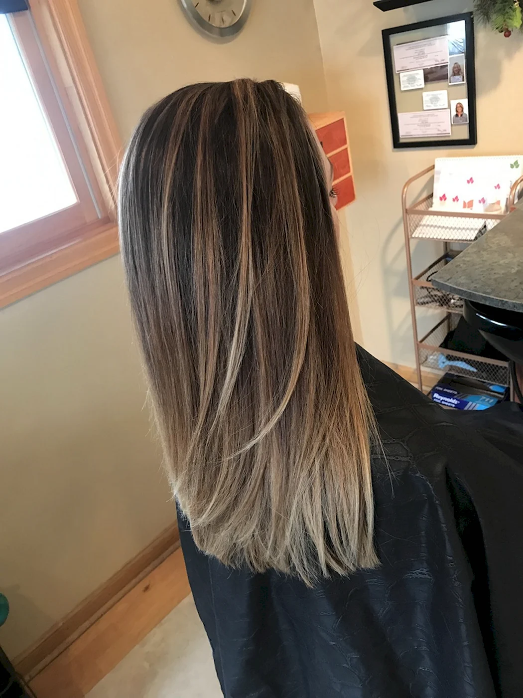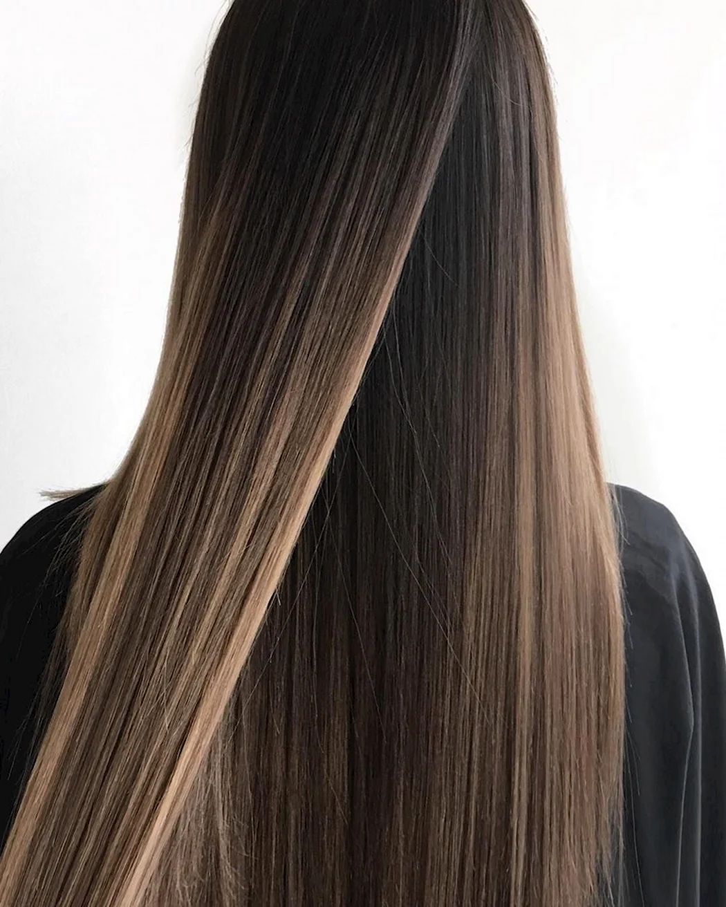 Окрашивание волос балаяж на темные длинные прямые волосы