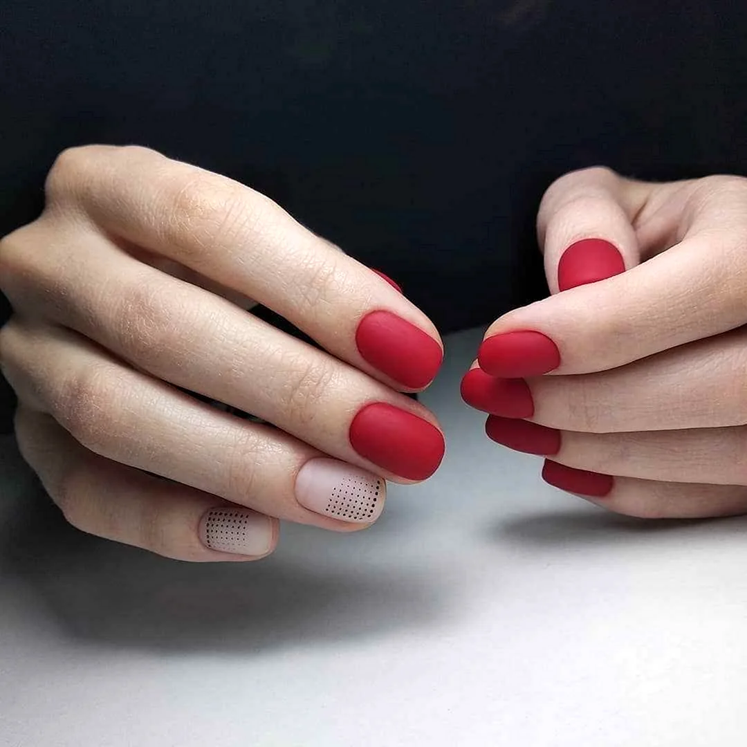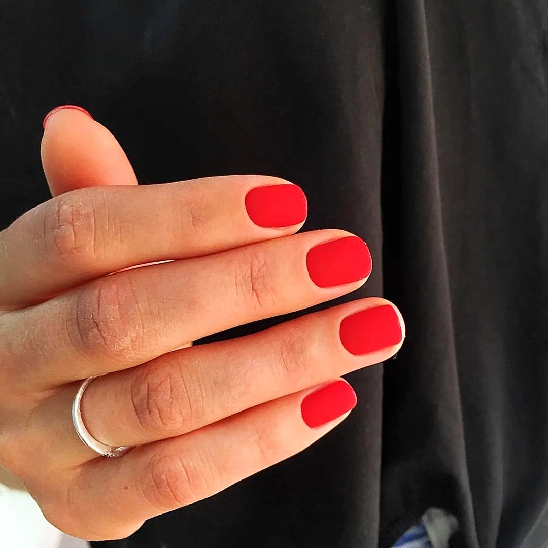 Красный матовый маникюр на короткие