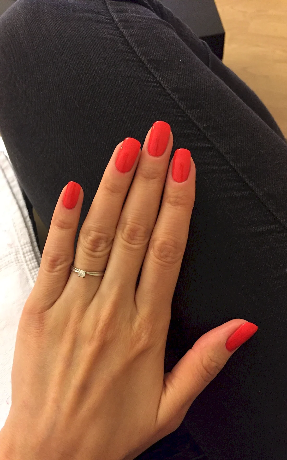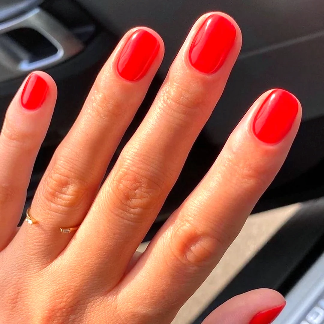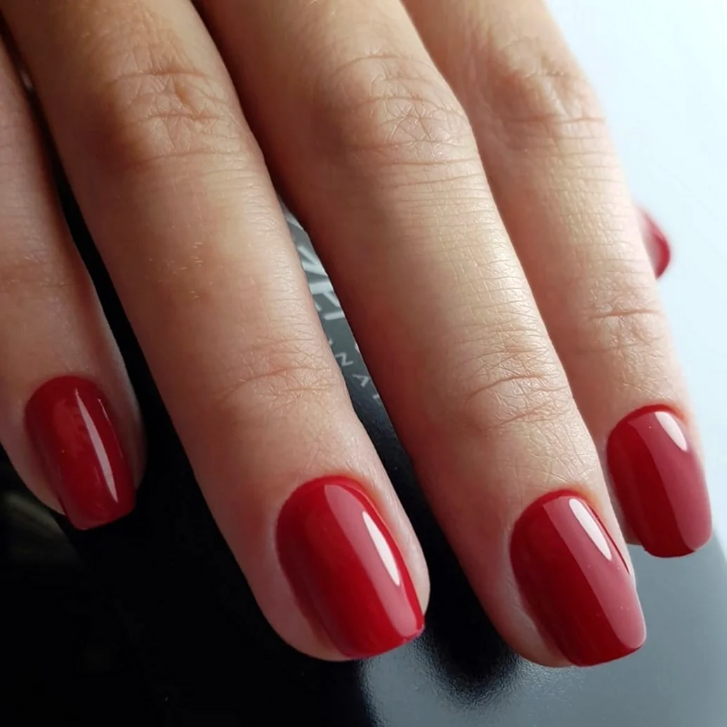 Однотонный красный маникюр на короткие ногти