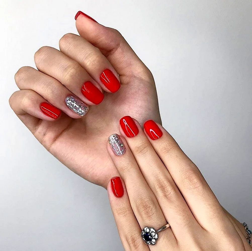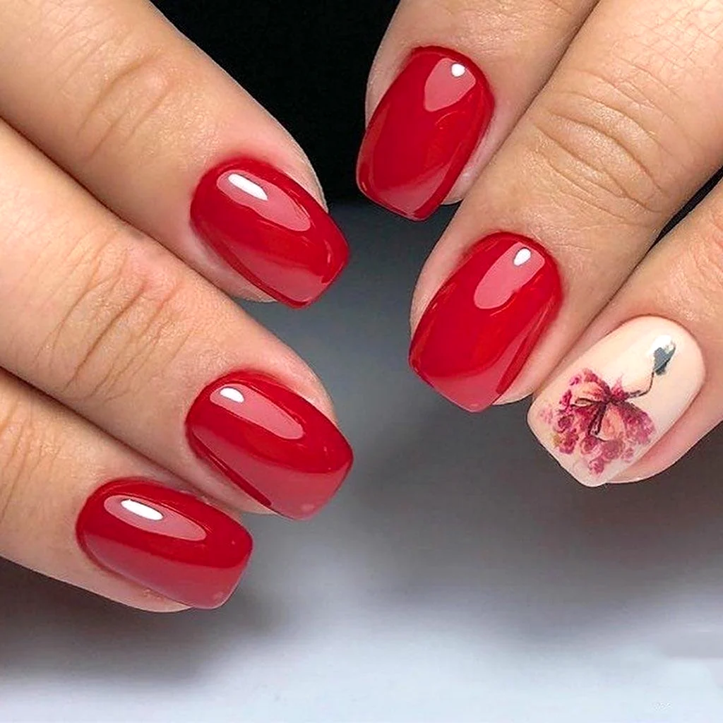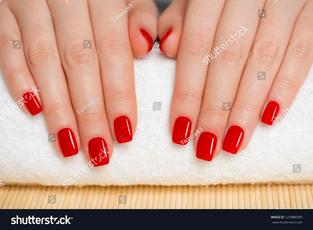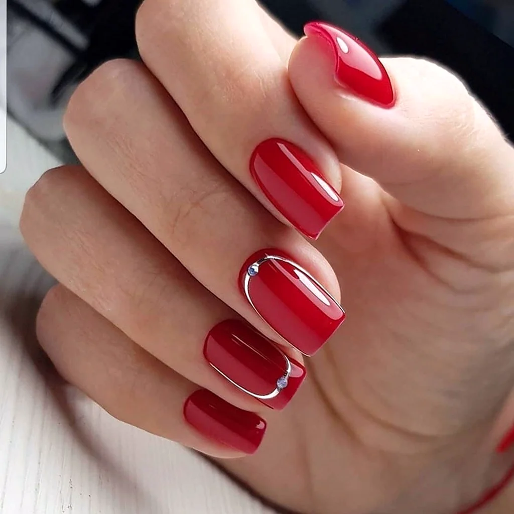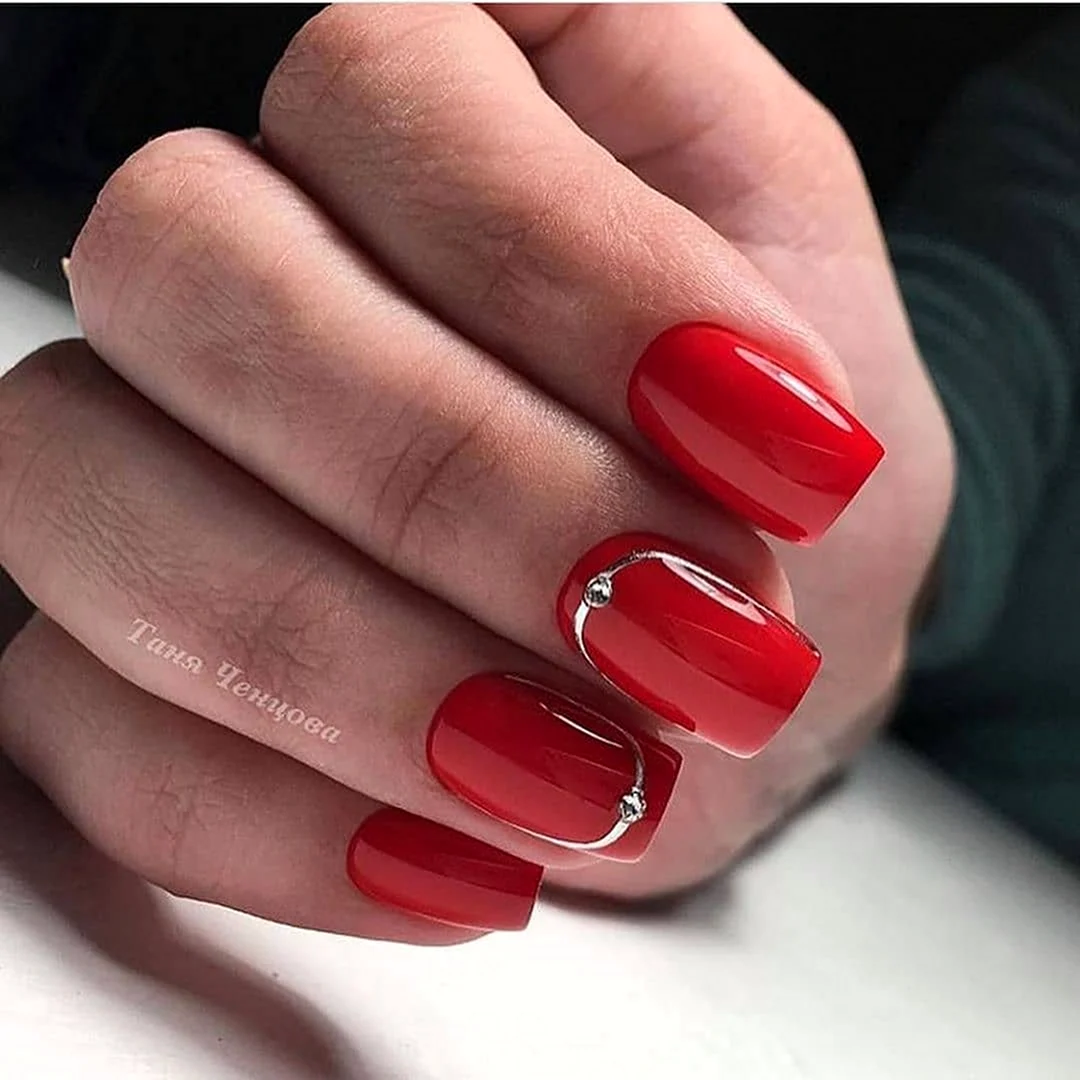Красный маникюр на короткие ногти квадратной формы