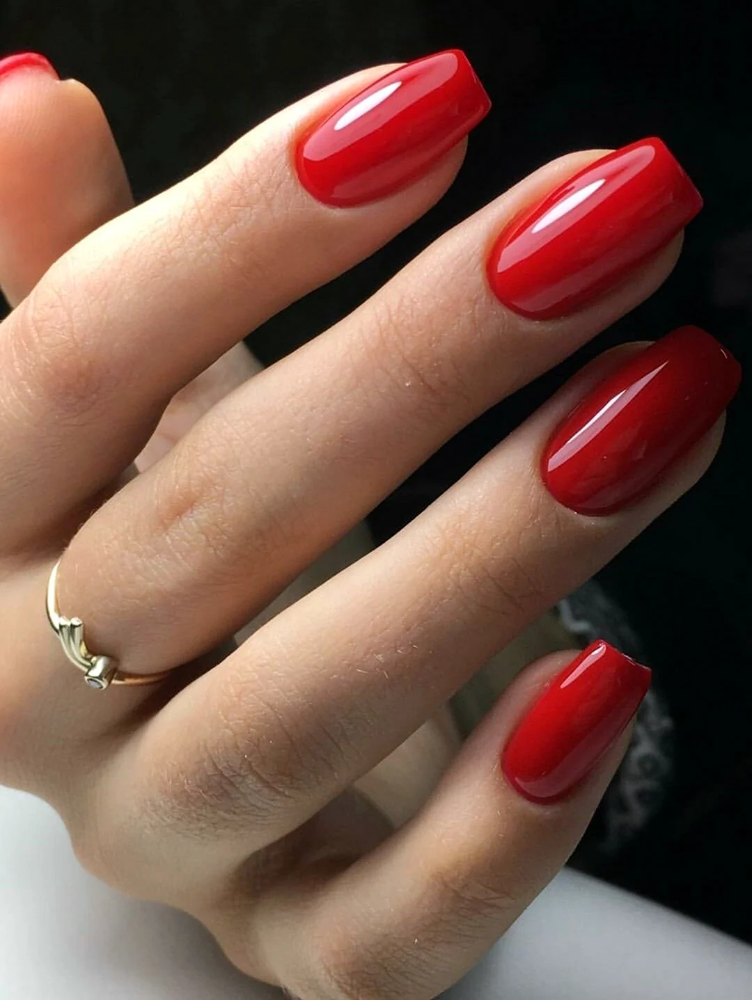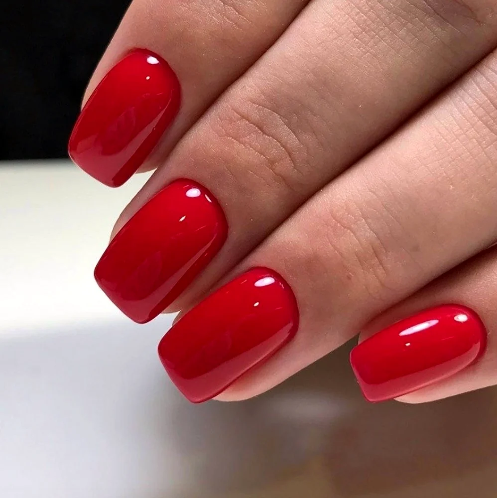 Красный маникюр мягкий квадрат