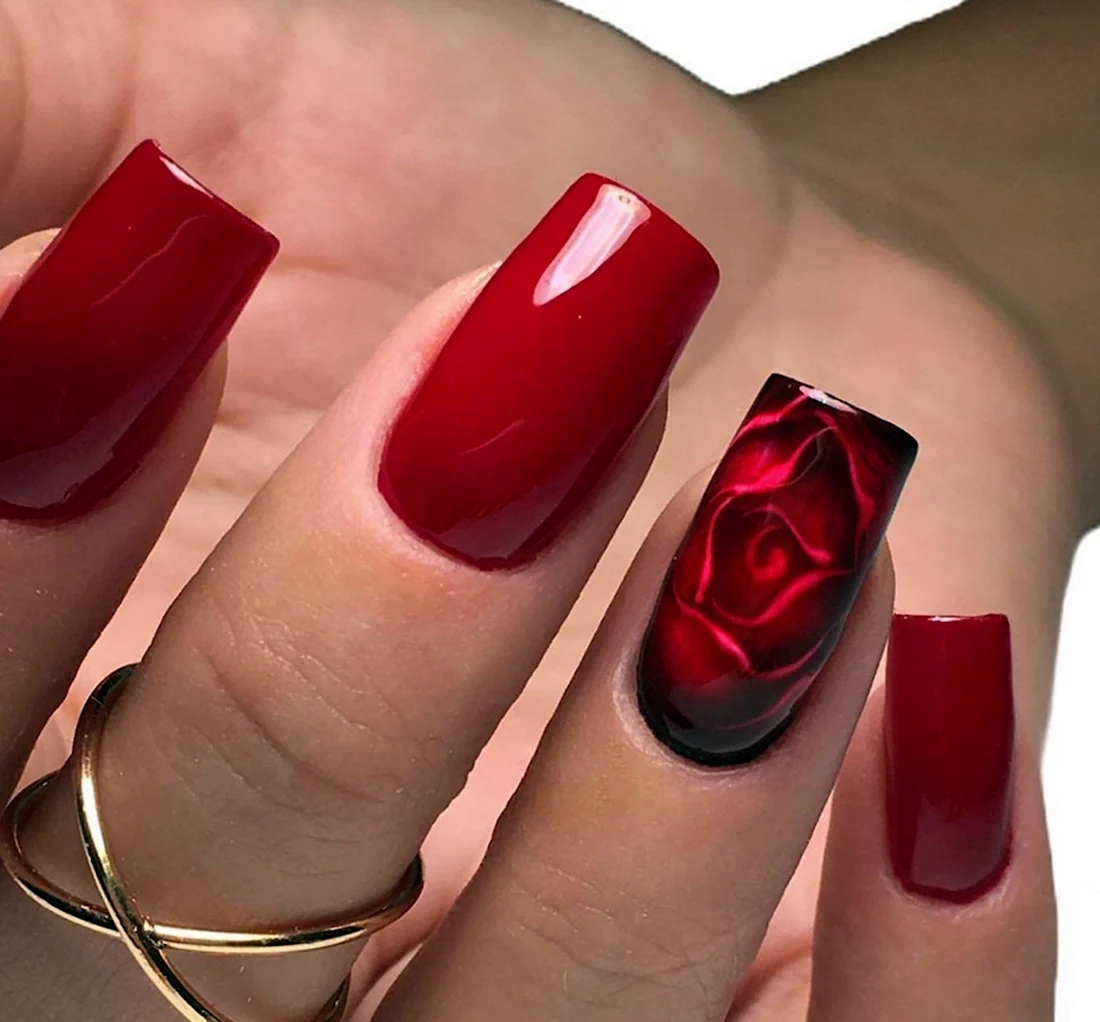 Красный маникюр с розами