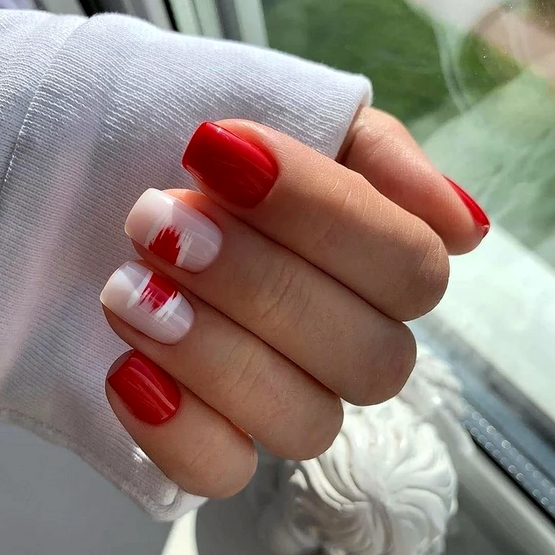 Маникюр на короткие ногти квадрат красные