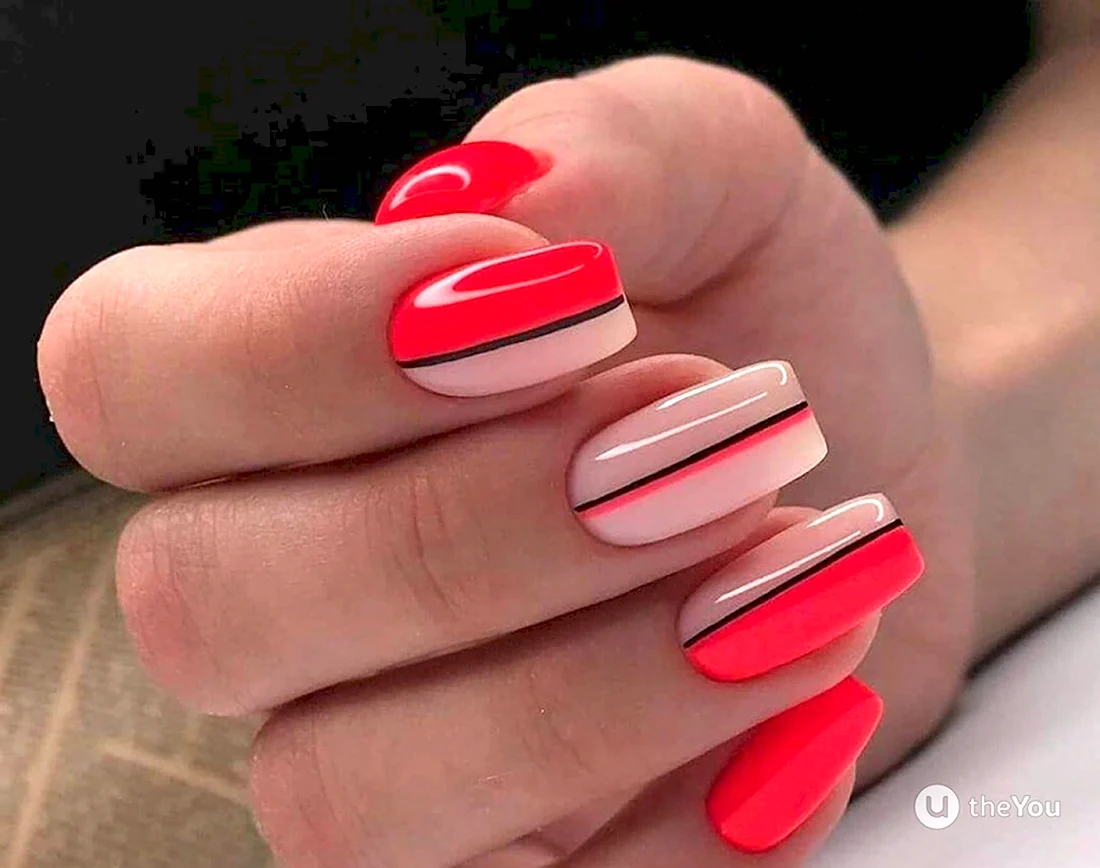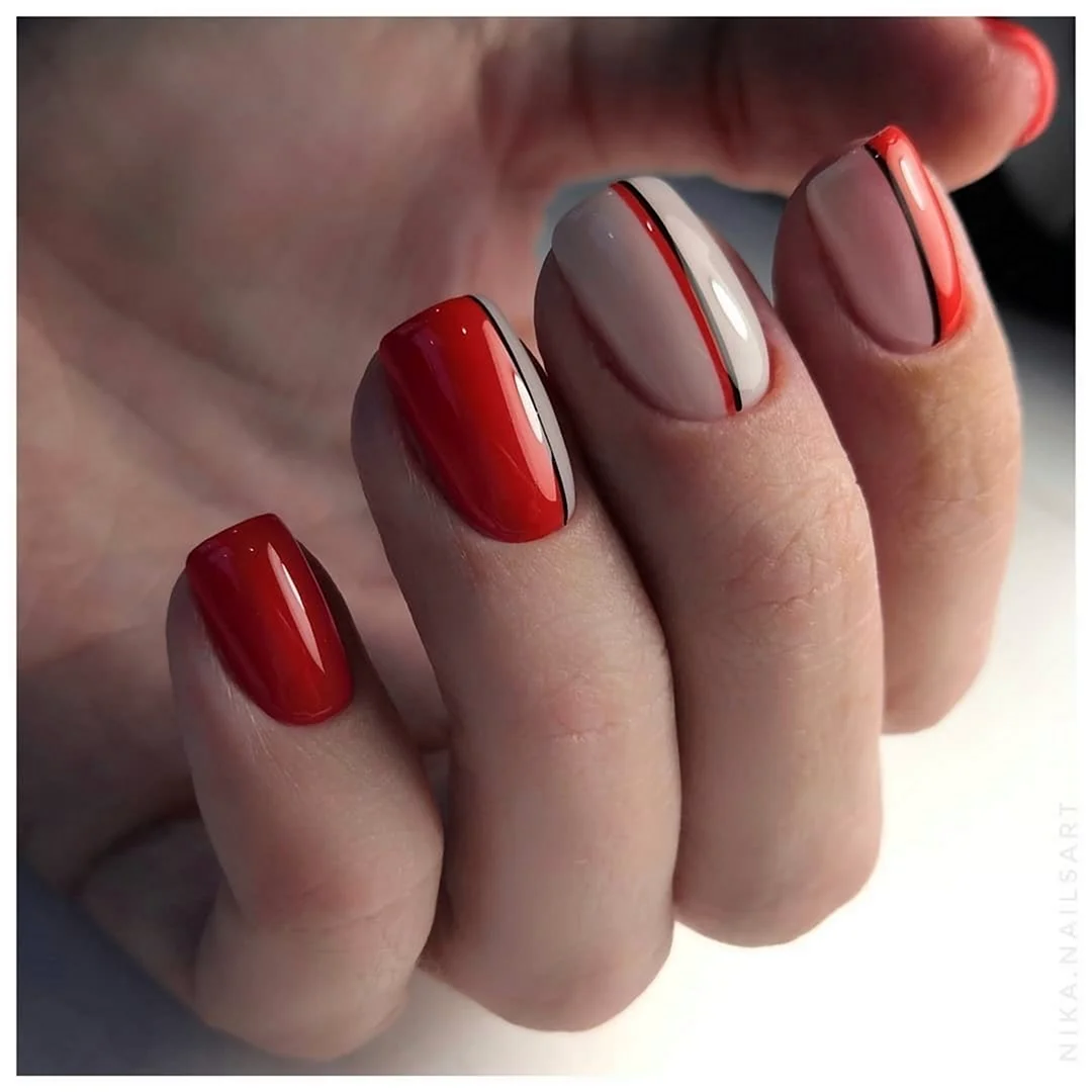 Красный маникюр с полочками