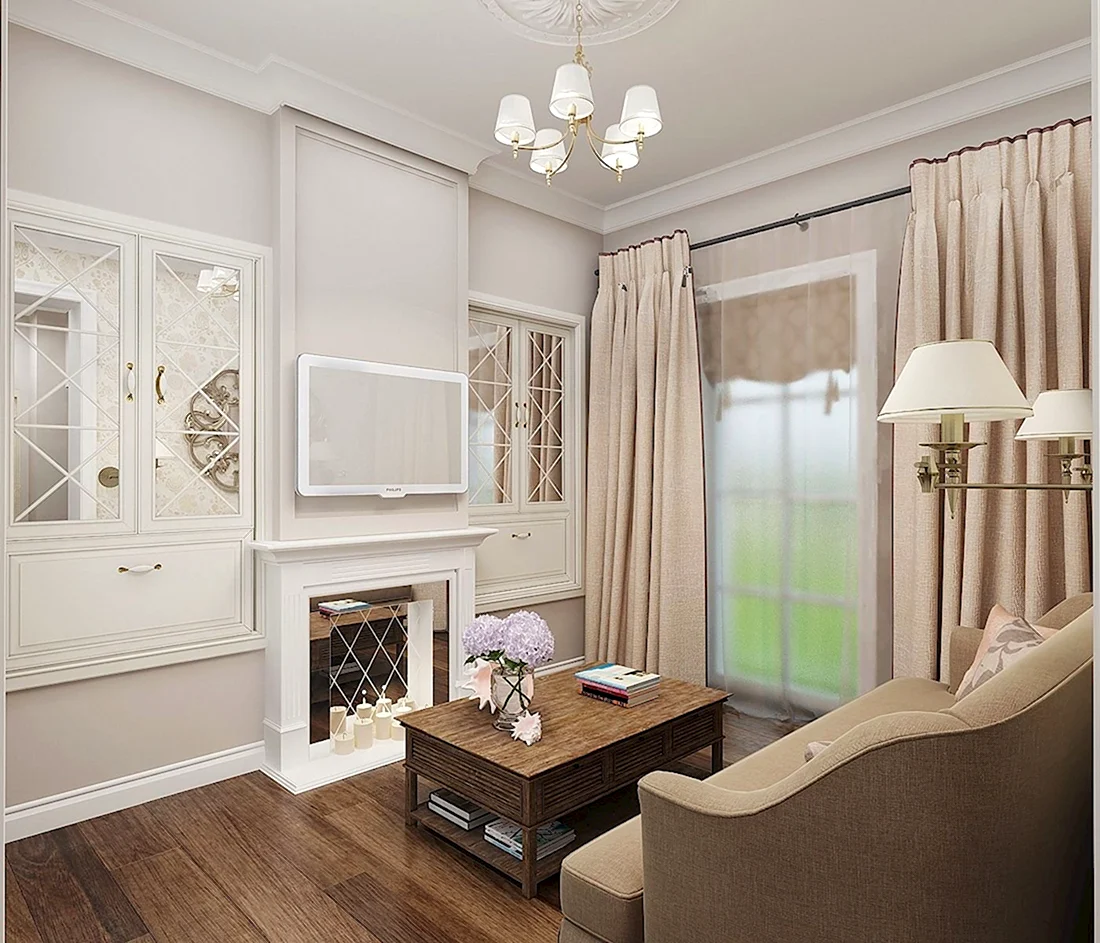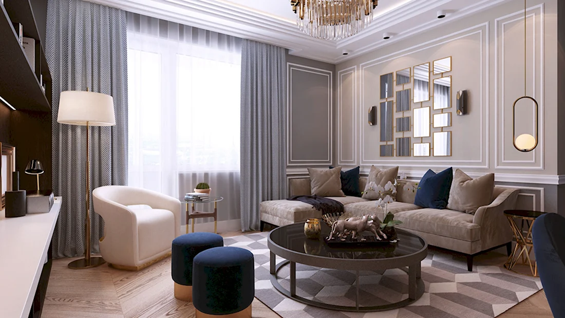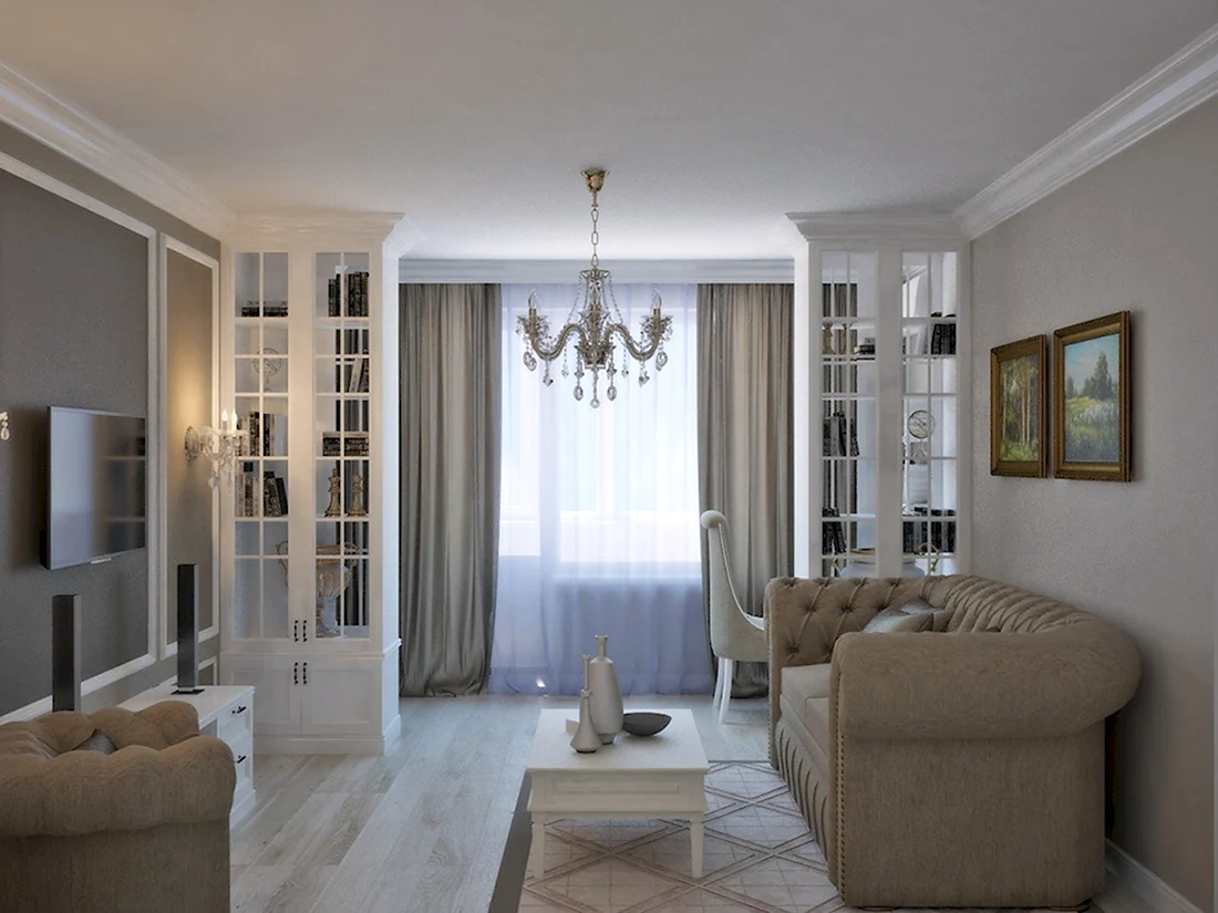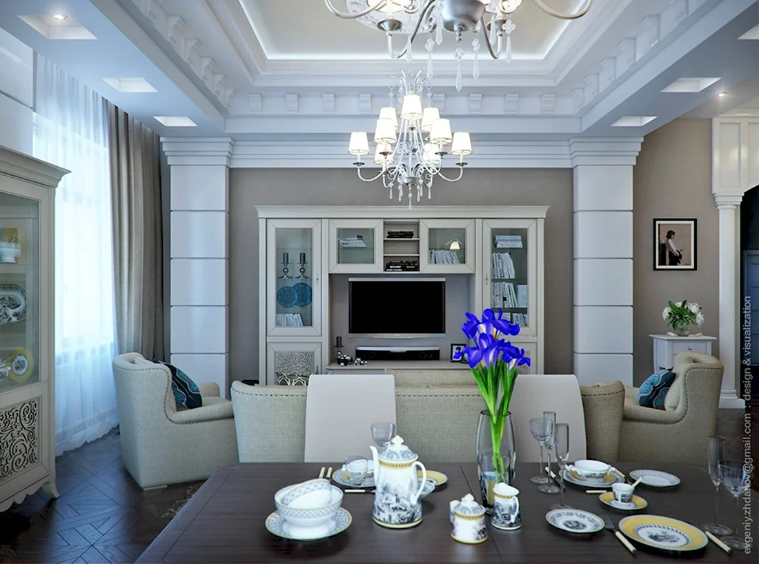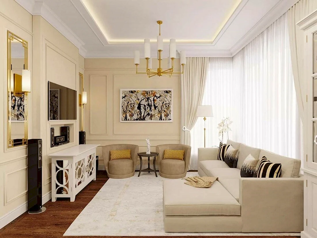 Гостиная 15 кв м Неоклассика