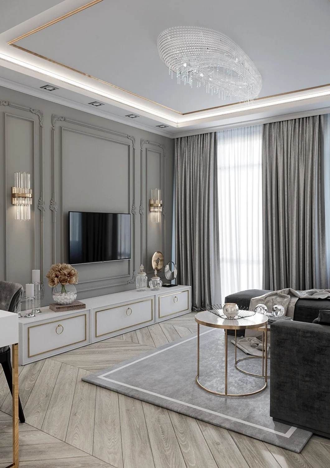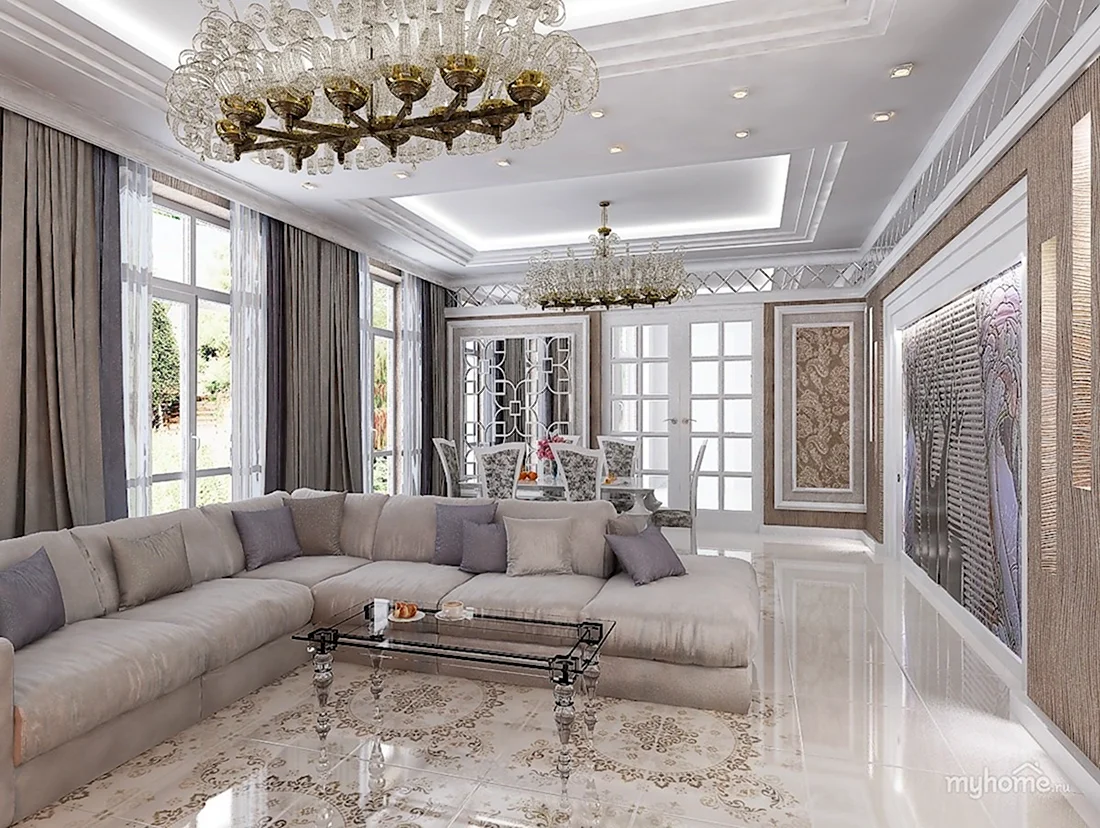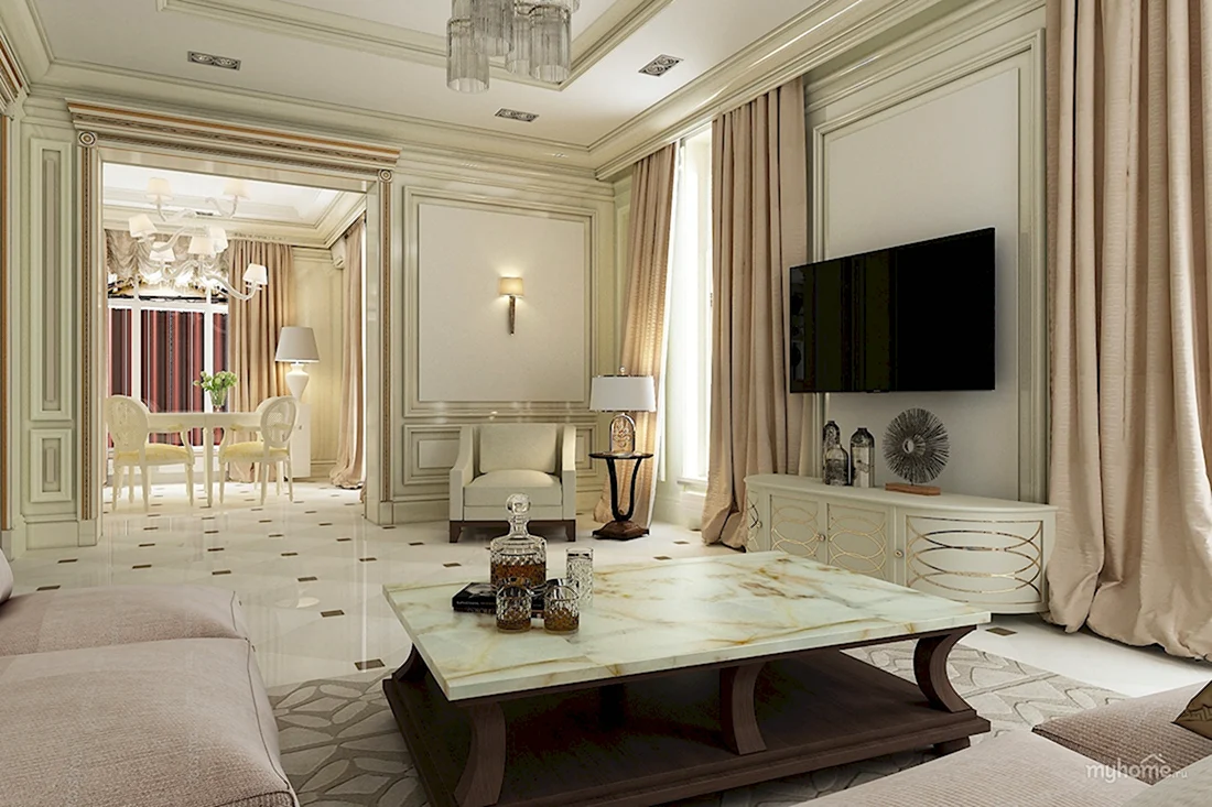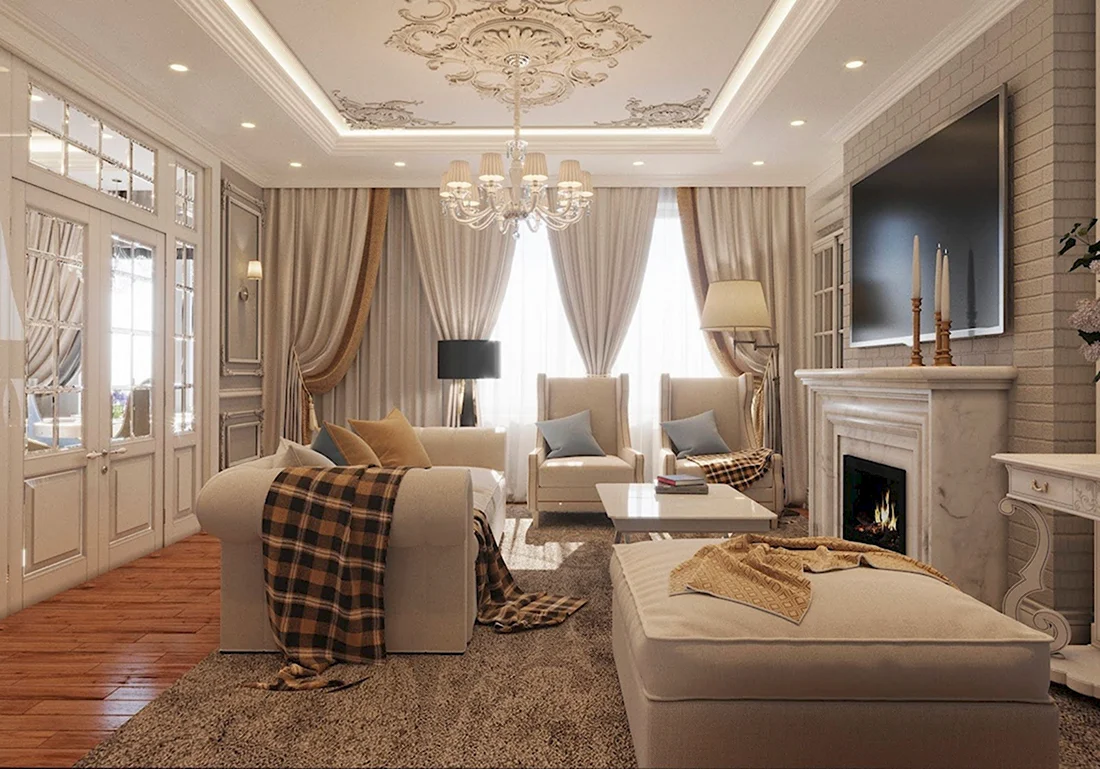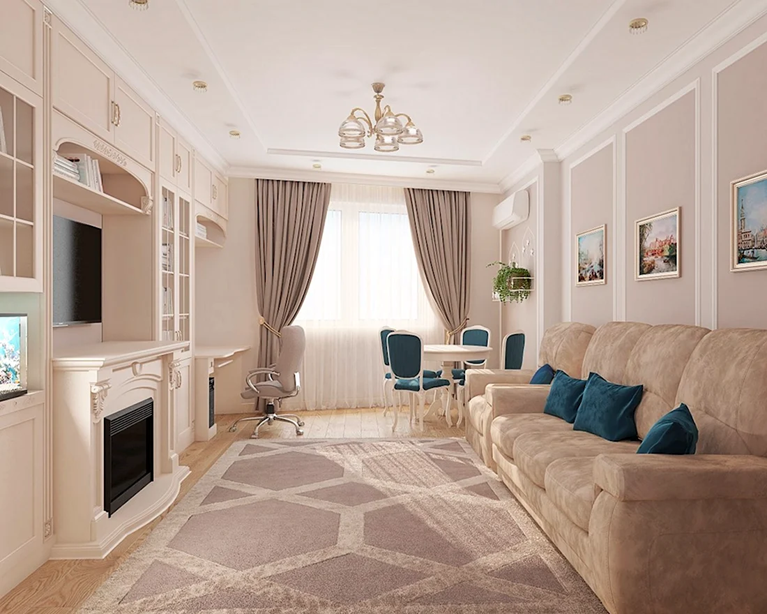 Гостиная 15 кв м Неоклассика