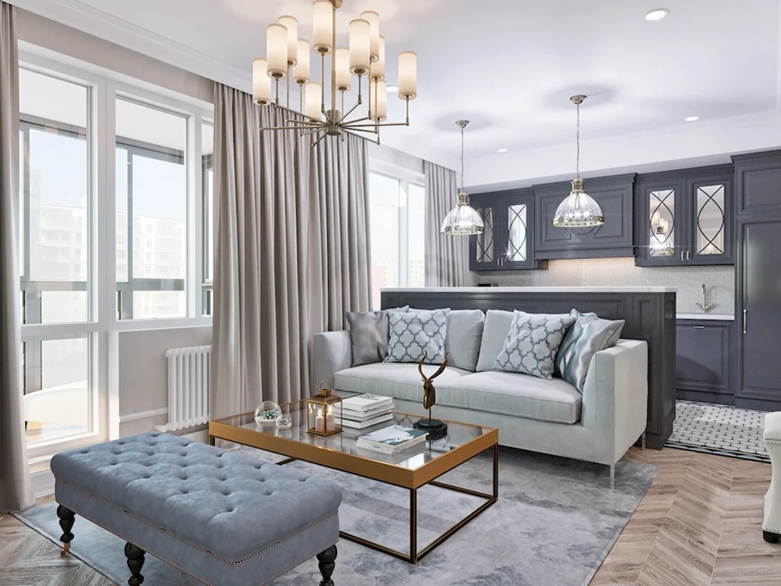 Кухня гостиная Неоклассика Скандинавия