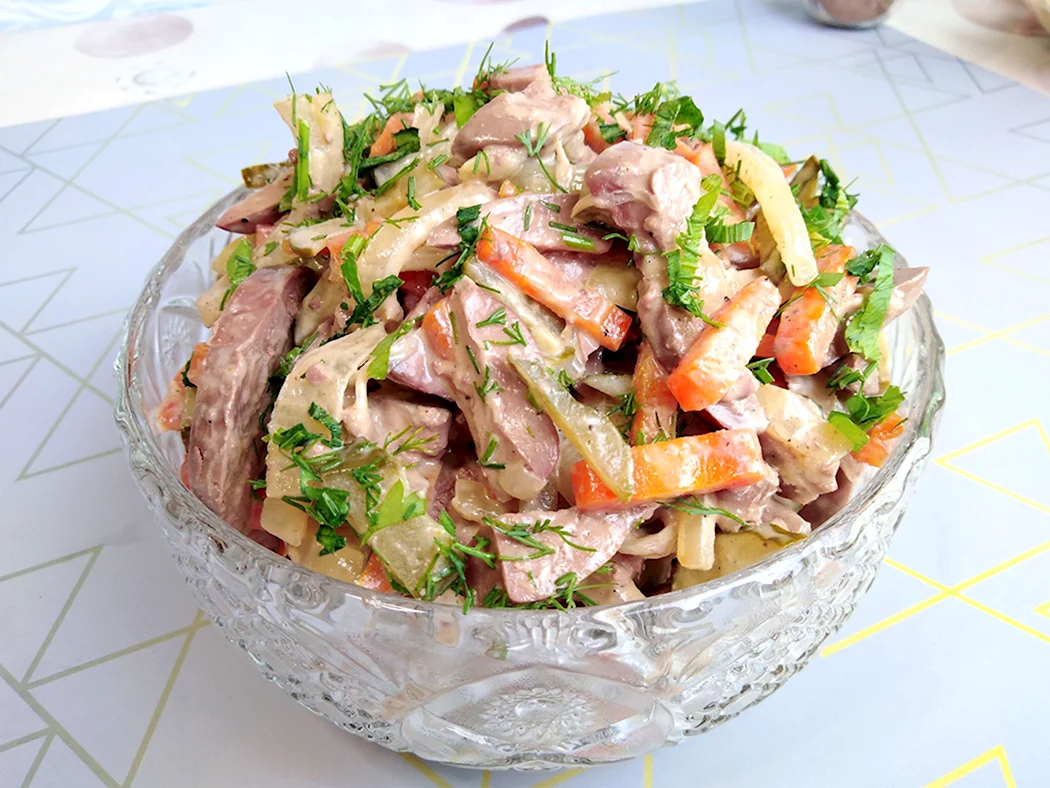 Хотите попробовать изысканный салат обжорка со свининой? Перейдите и увидьте фотографии и картинки этого восхитительного блюда.