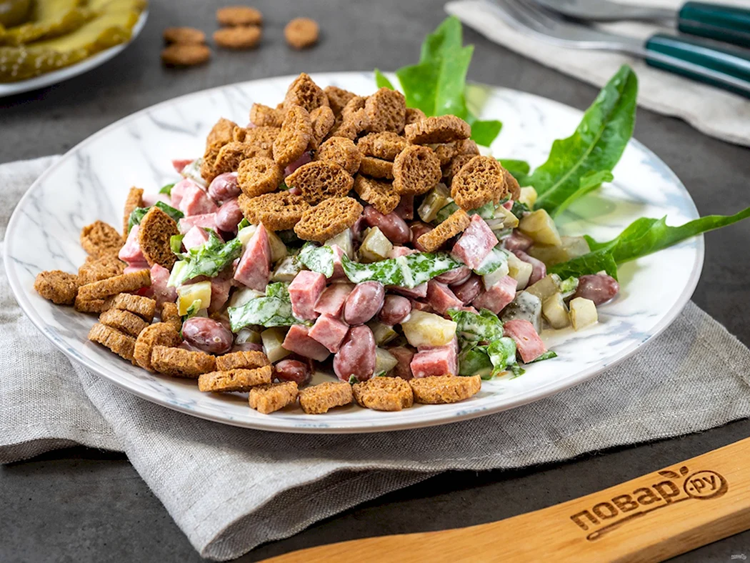 Салат из фасоли с сухариками