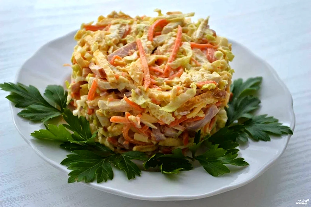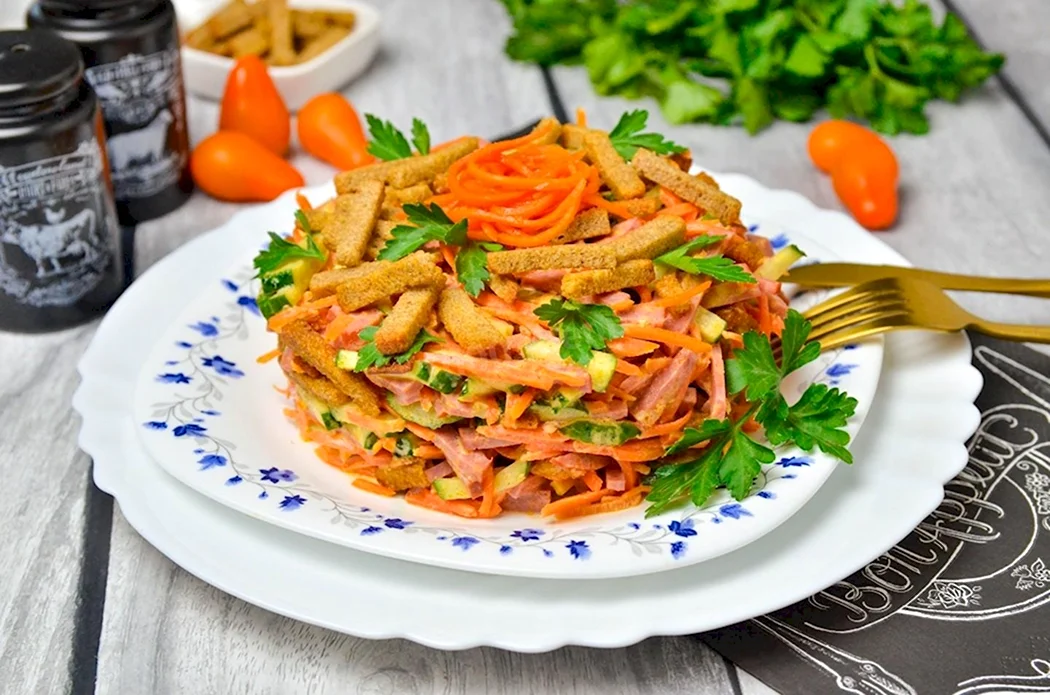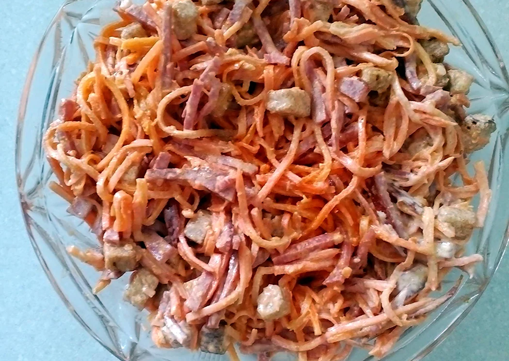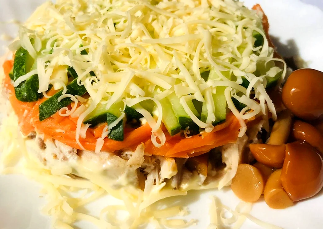 Салат из копчёной курицы с корейской морковкой и огурцом