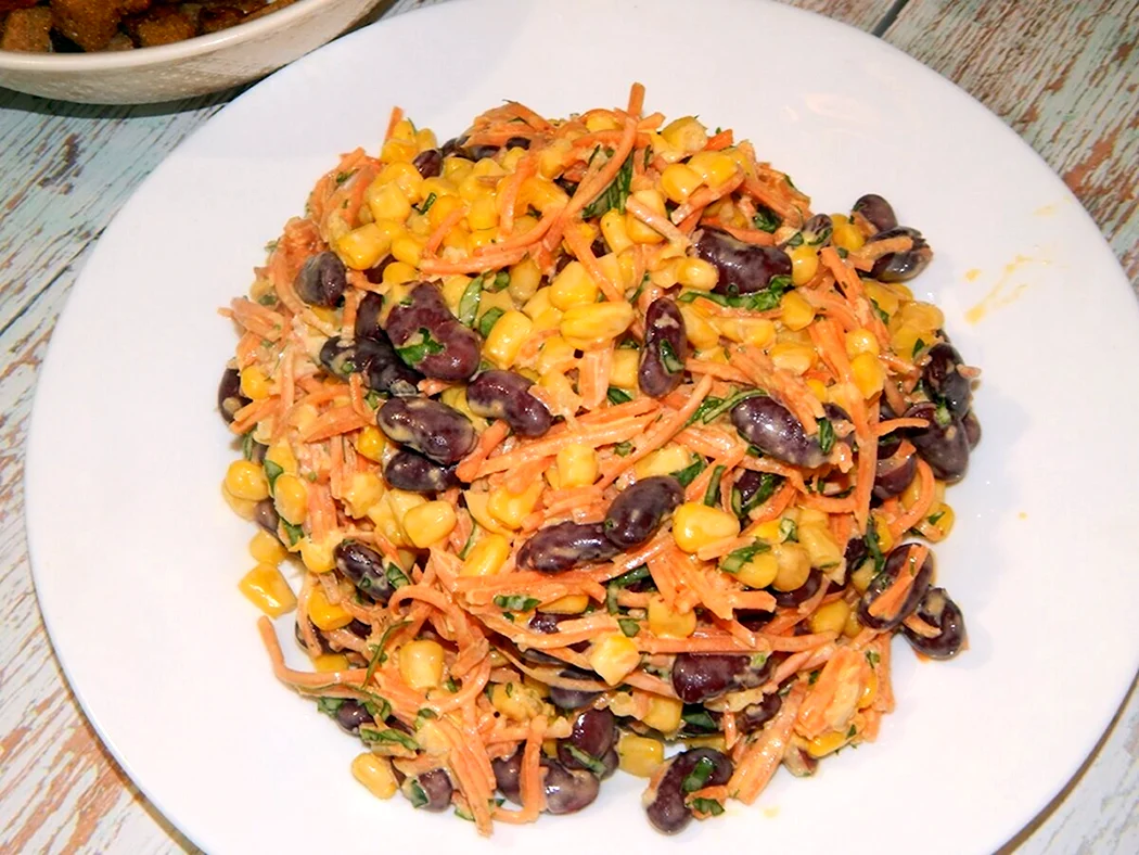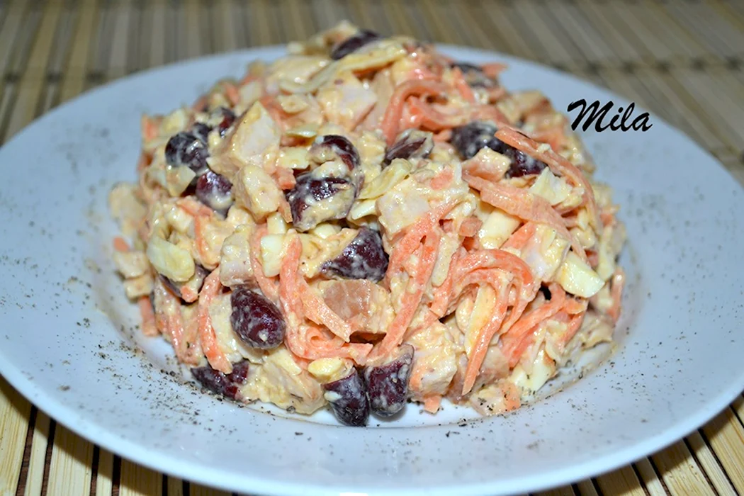 Салат из копчёной курицы с корейской морковкой и фасолью