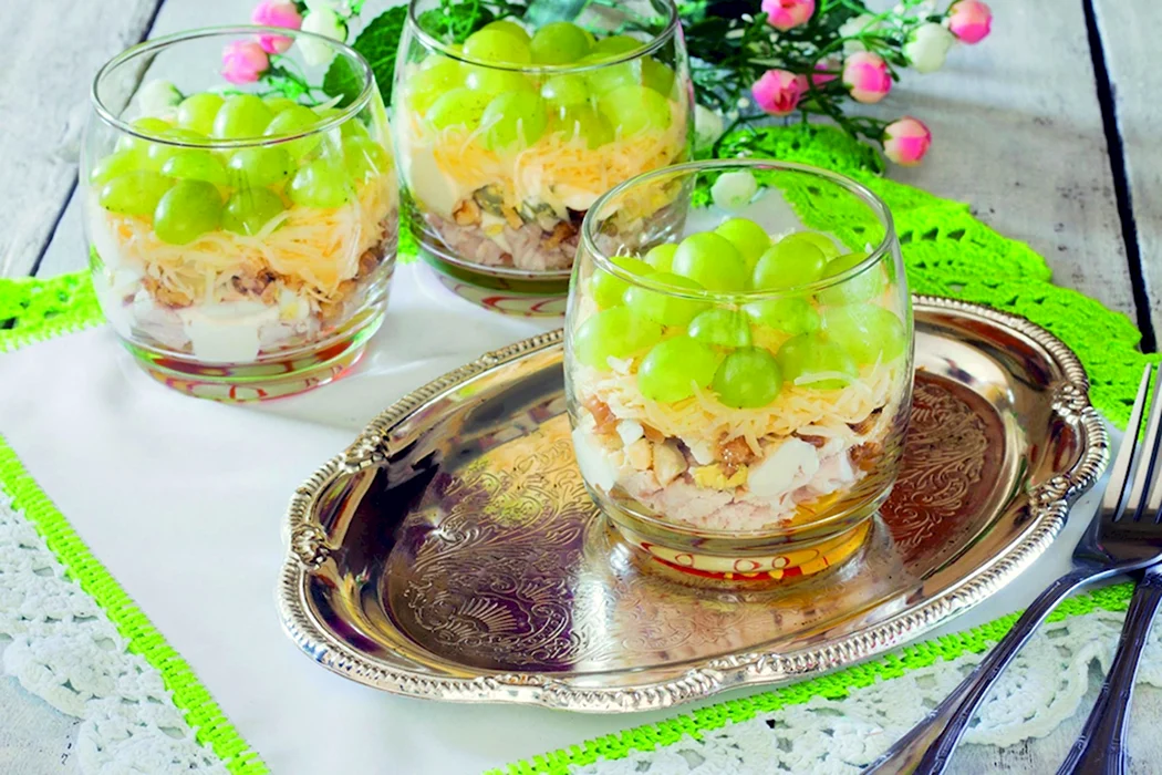 Салат Виноградная гроздь с курицей и грецкими орехами