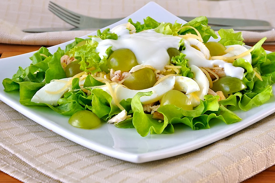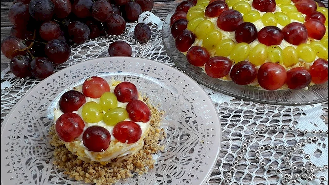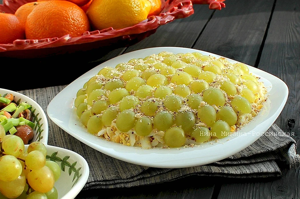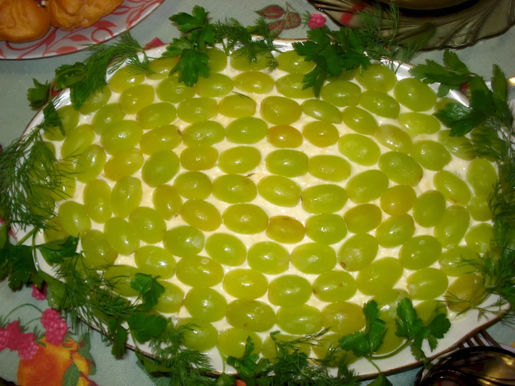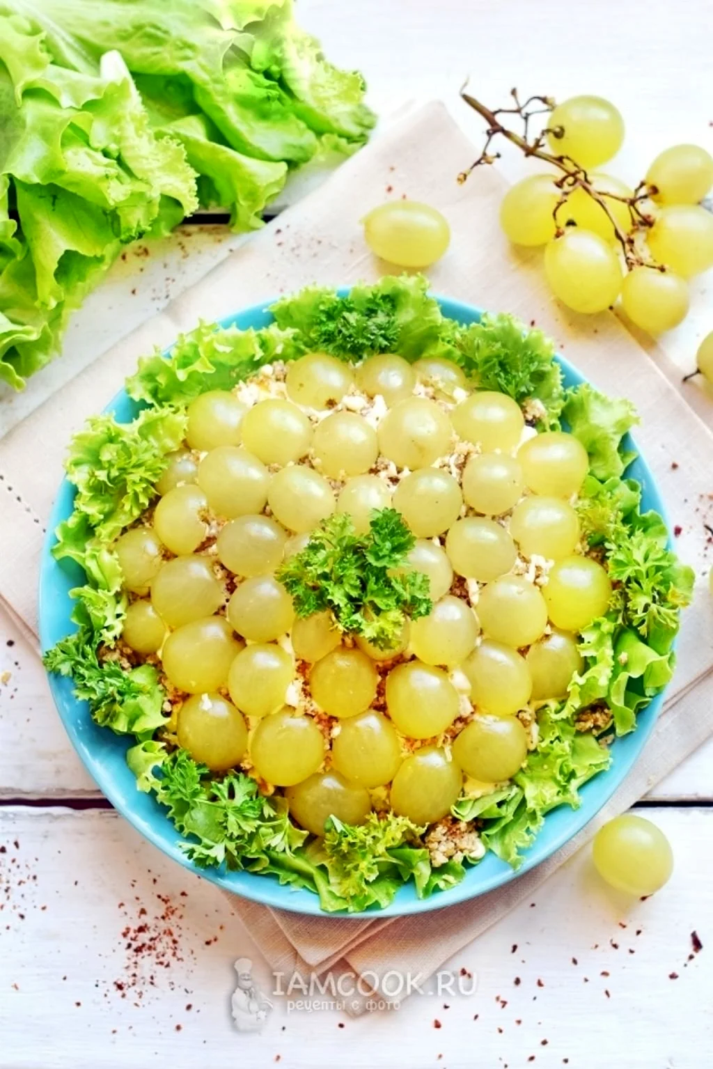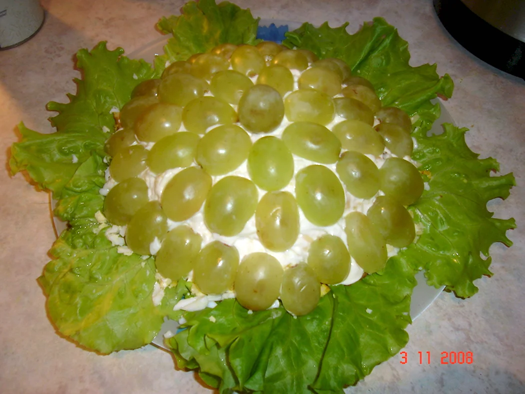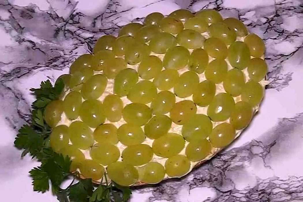 Салат Виноградная гроздь с копченой курицей и виноградом