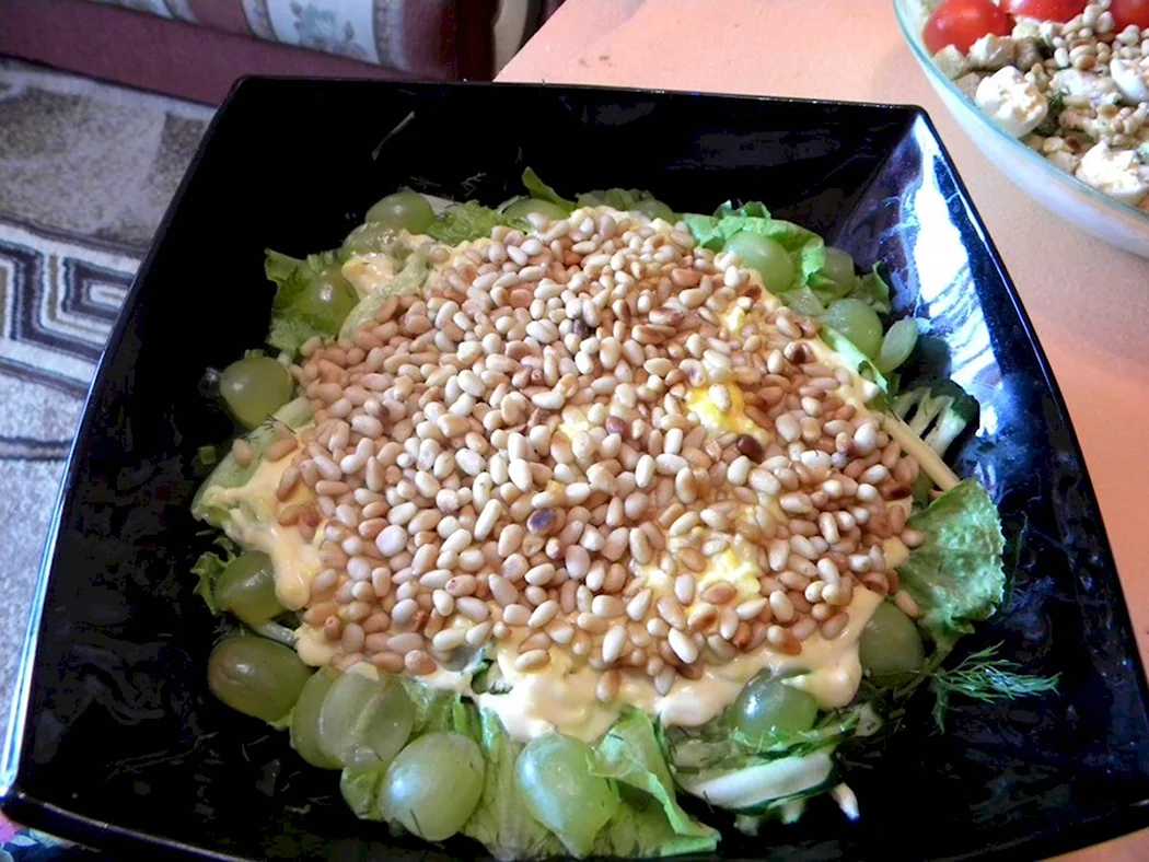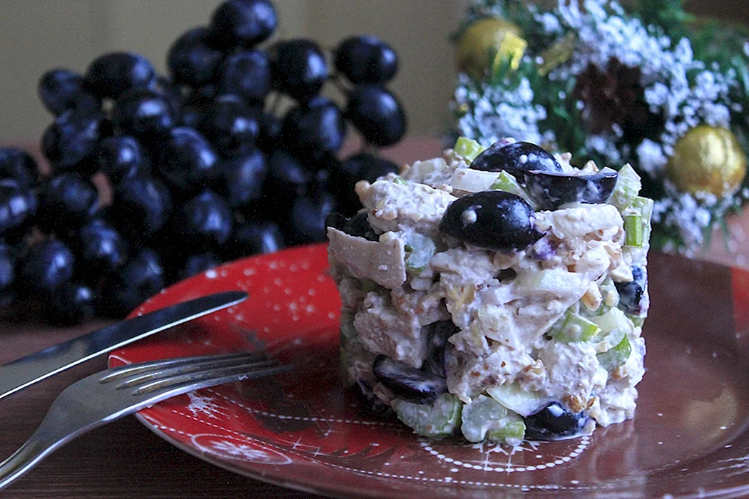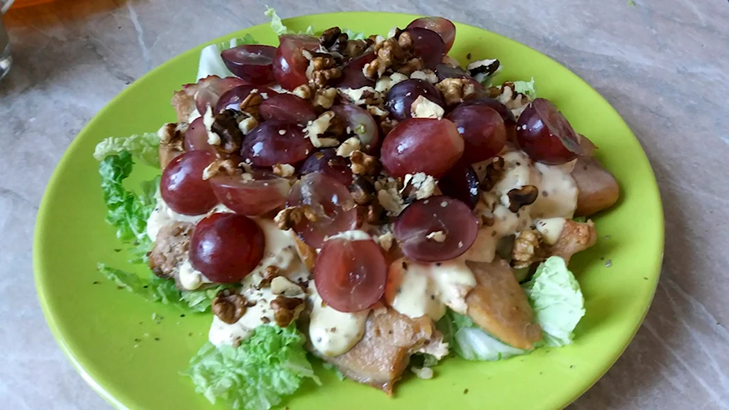 Салат с виноградом и курицей и грецкими орехами и черносливом