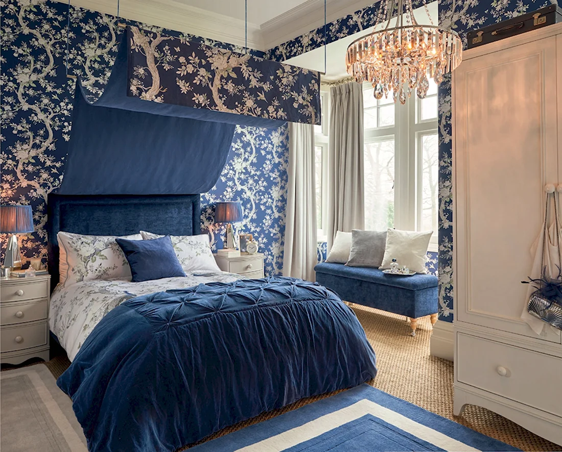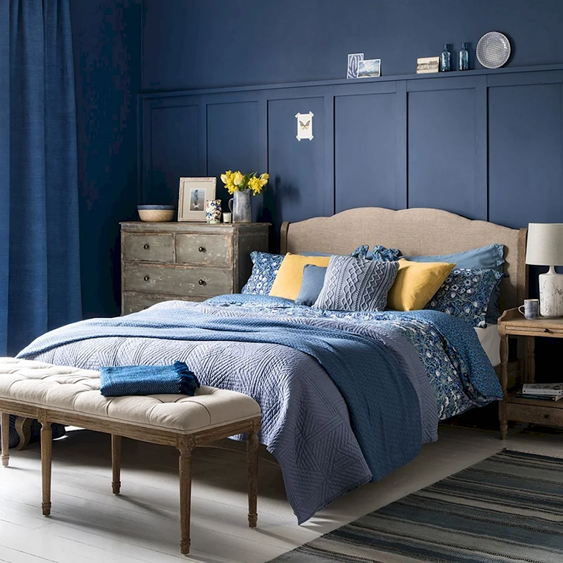 Ой, какая же уютная и спокойная атмосфера в этих фотографиях! Синий цвет такой успокаивающий, прямо мечтаю провести вечер в такой синей спальне, с чашечкой горячего чая и хорошей книгой. Уже представляю, как ложусь в такую кровать после долгого дня и моментально засыпаю, окруженная такой красотой. Уютно до мозга костей!