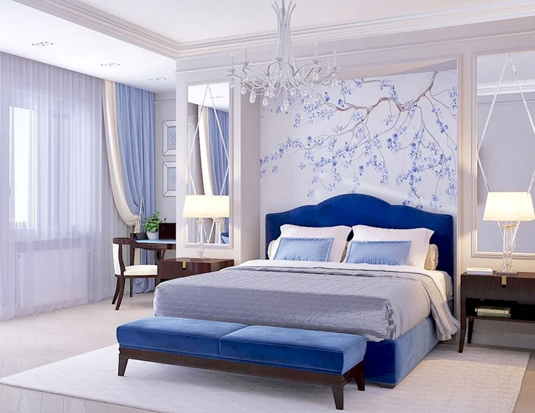 Я всегда считал, что синий цвет в интерьере спальни — это знак тонкого вкуса и стильного подхода к дизайну. А эти фотографии просто подтверждают мою точку зрения! Я бы с удовольствием провел время в такой уютной и элегантной обстановке. Надо будет подсмотреть идеи для своей спальни!