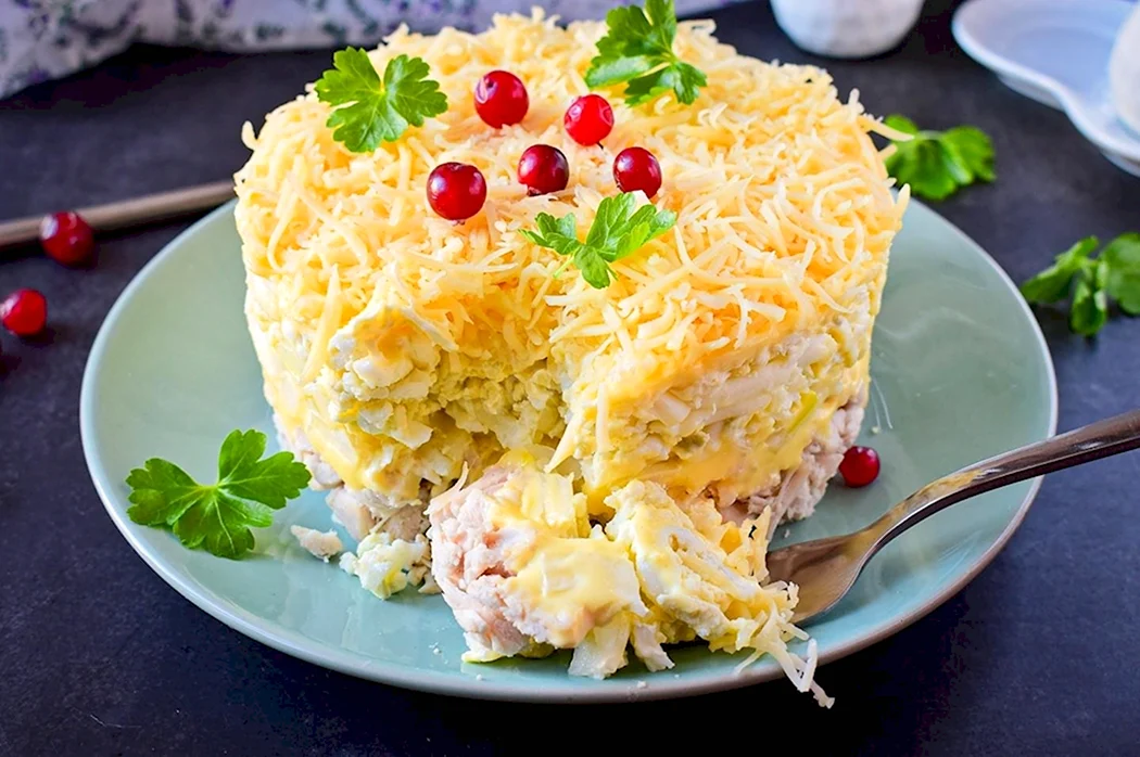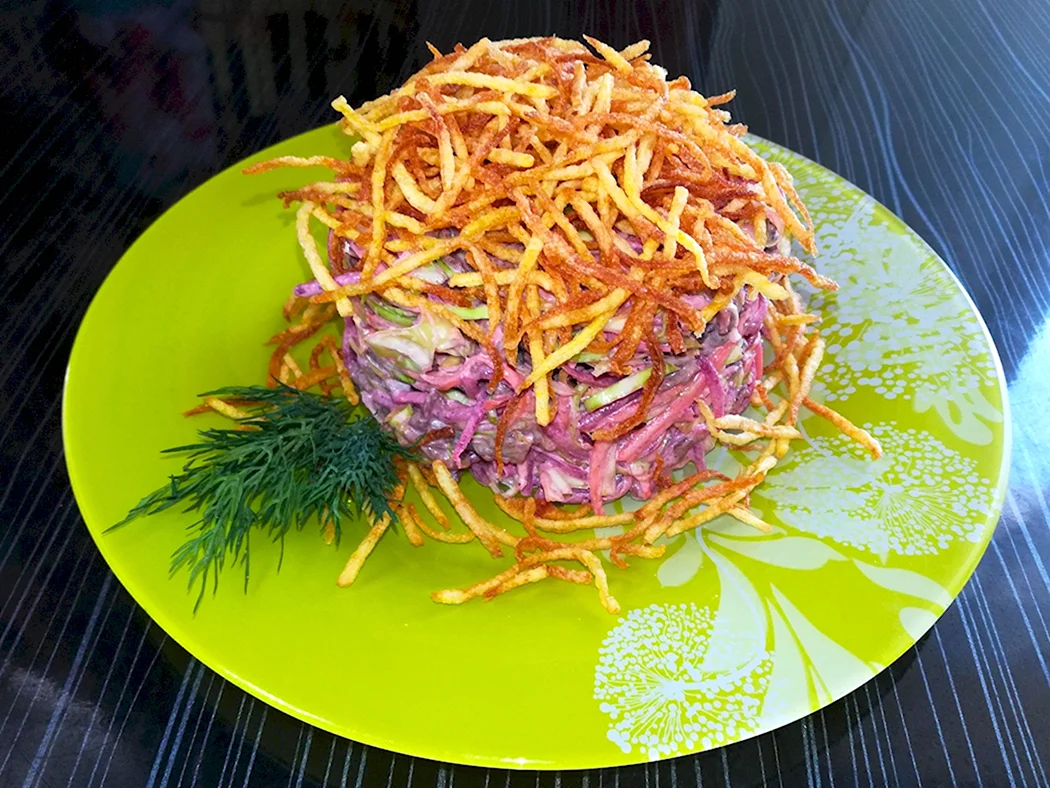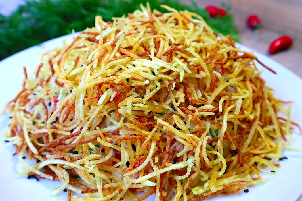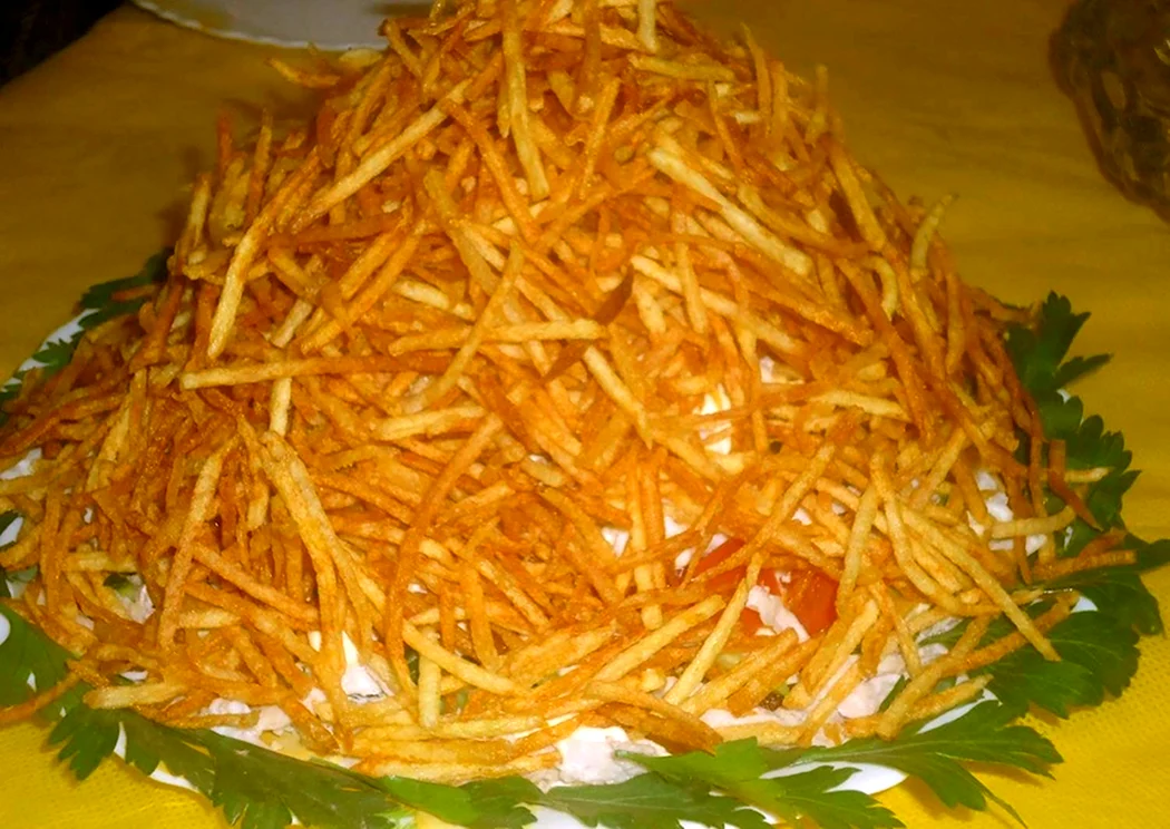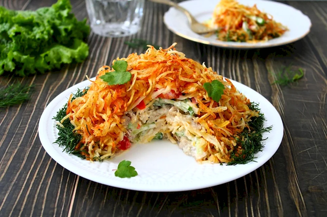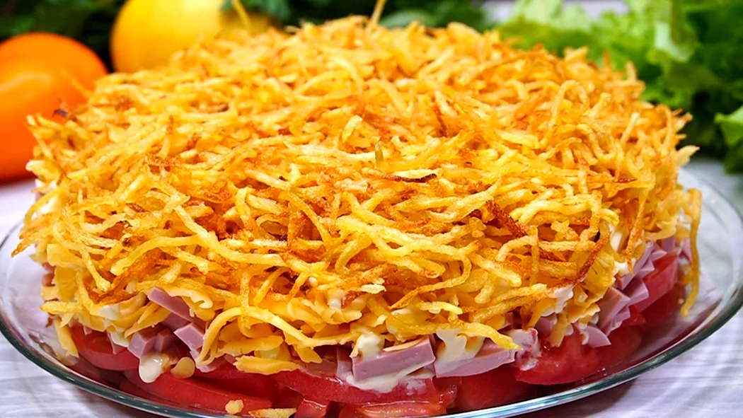 А вот и наша новая идея для весеннего праздничного стола — сеновой стог салат! Представляю, какие восторженные взгляды гостей будут, когда им предложишь такой оригинальный и вкусный угощение. А ещё, это такой фотогеничный деликатес, что все захотят запечатлеть его на камеру перед тем, как съесть до последней ложки. В общем, дамы и господа, приглашаем вас в мир кулинарных открытий!