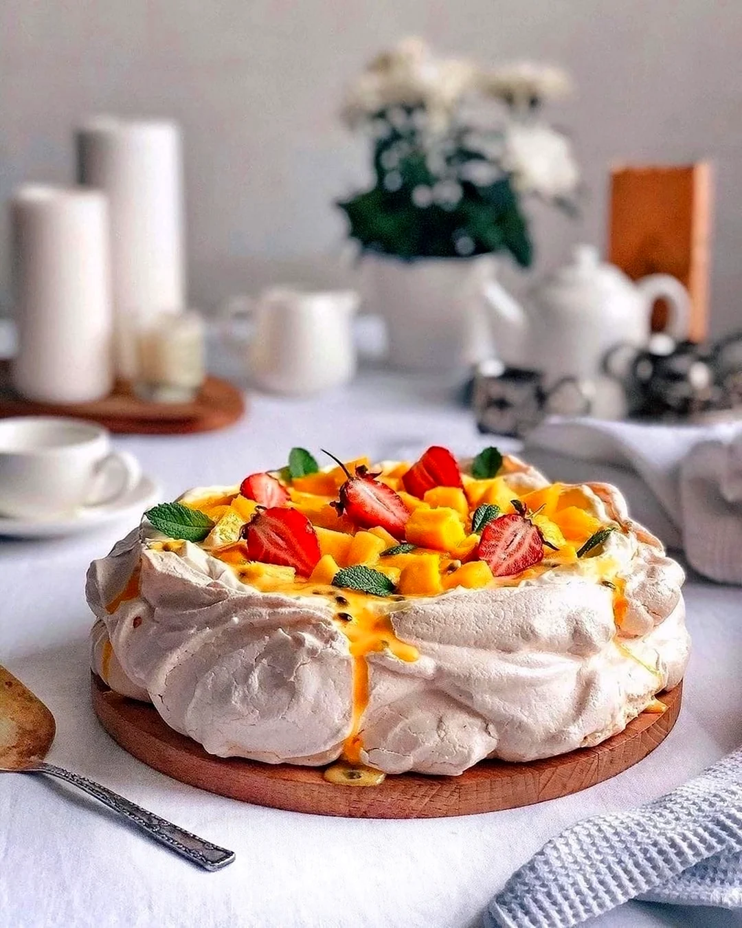 Этот торт просто бомба! Нежный белковый бисквит, хрустящая корочка, сладкие фрукты… Просто не могу оторваться от этого шедевра! Это настоящее произведение искусства в мире кулинарии. Павлова — лучший выбор для любого гурмана!