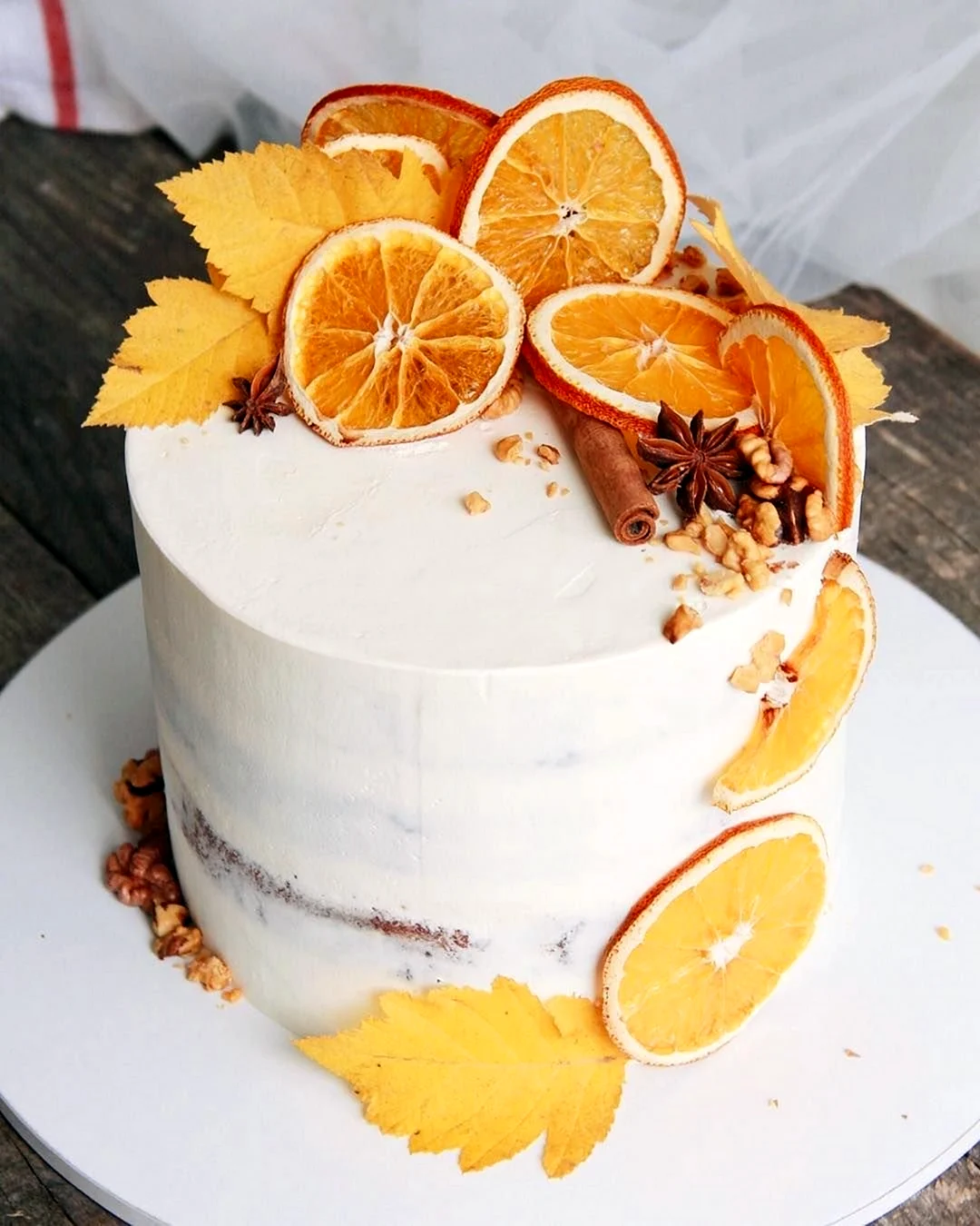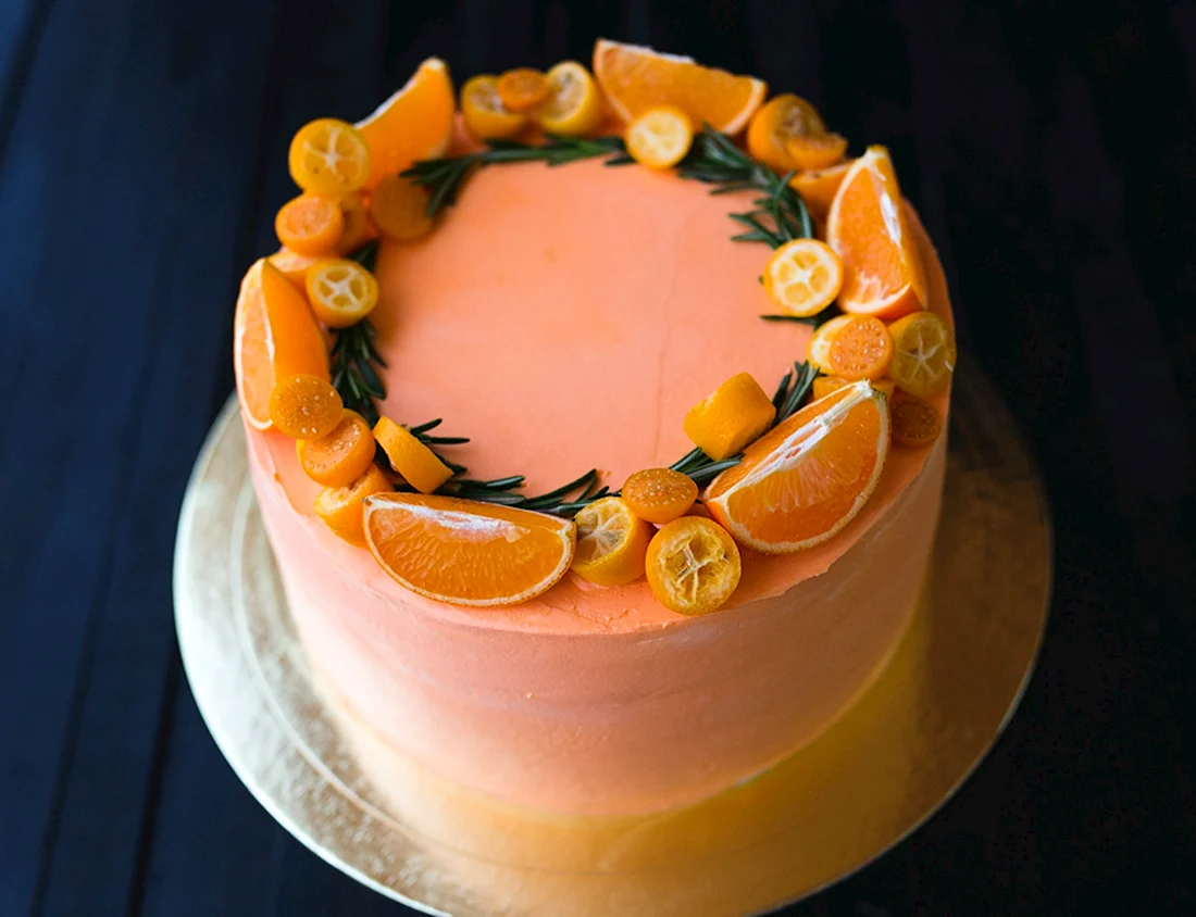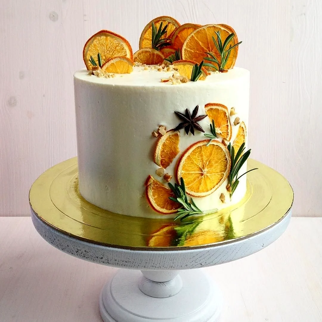 Мастерство в каждой детали: нежные апельсиновые дольки превращают обычный торт в настоящее произведение искусства.