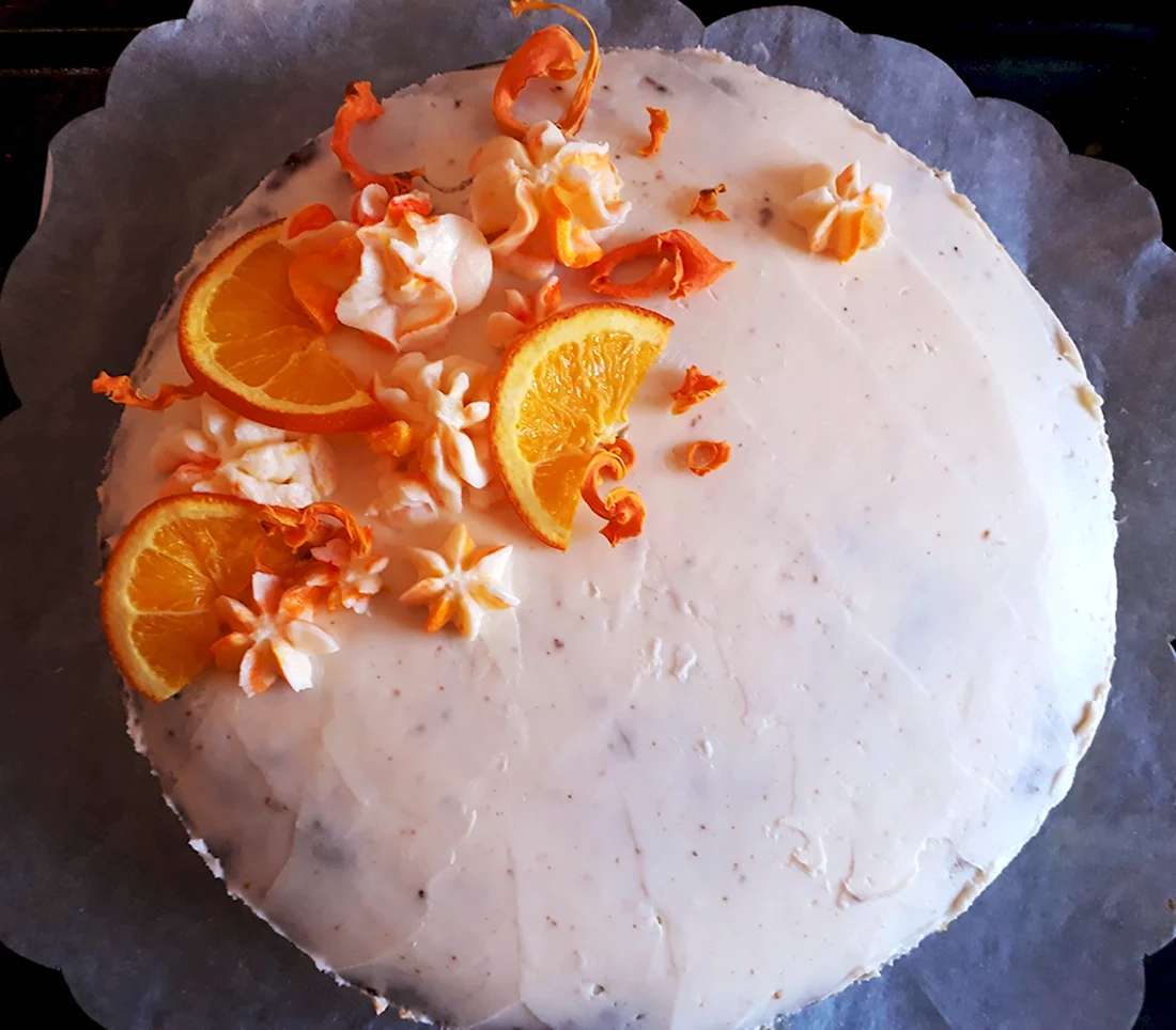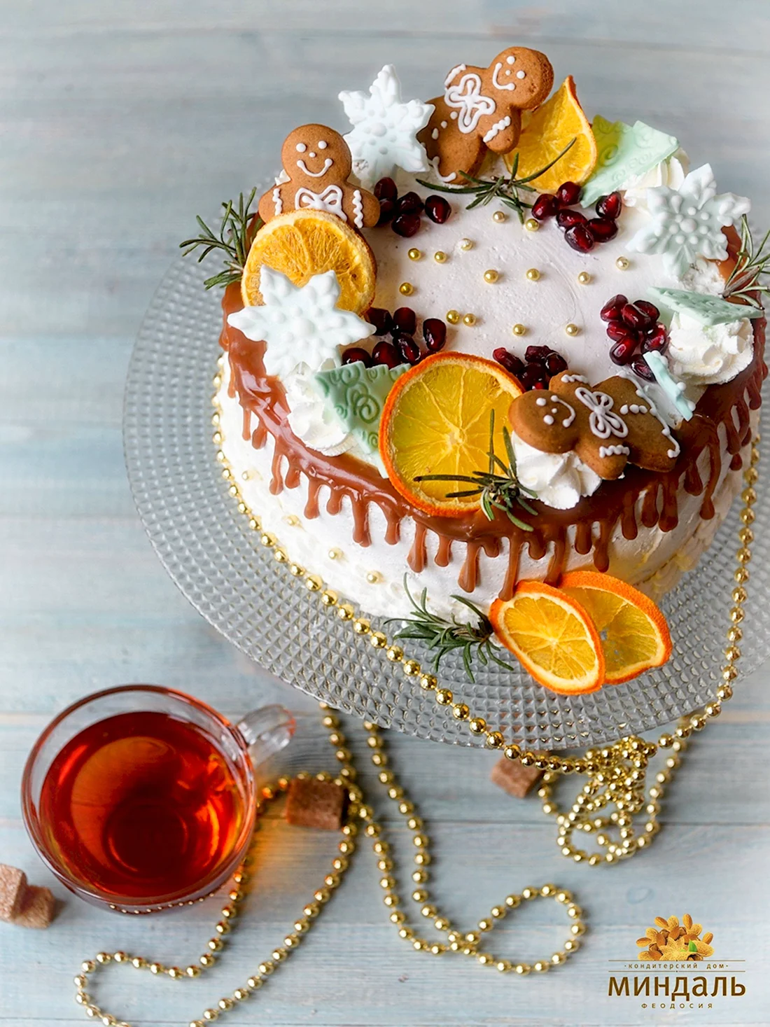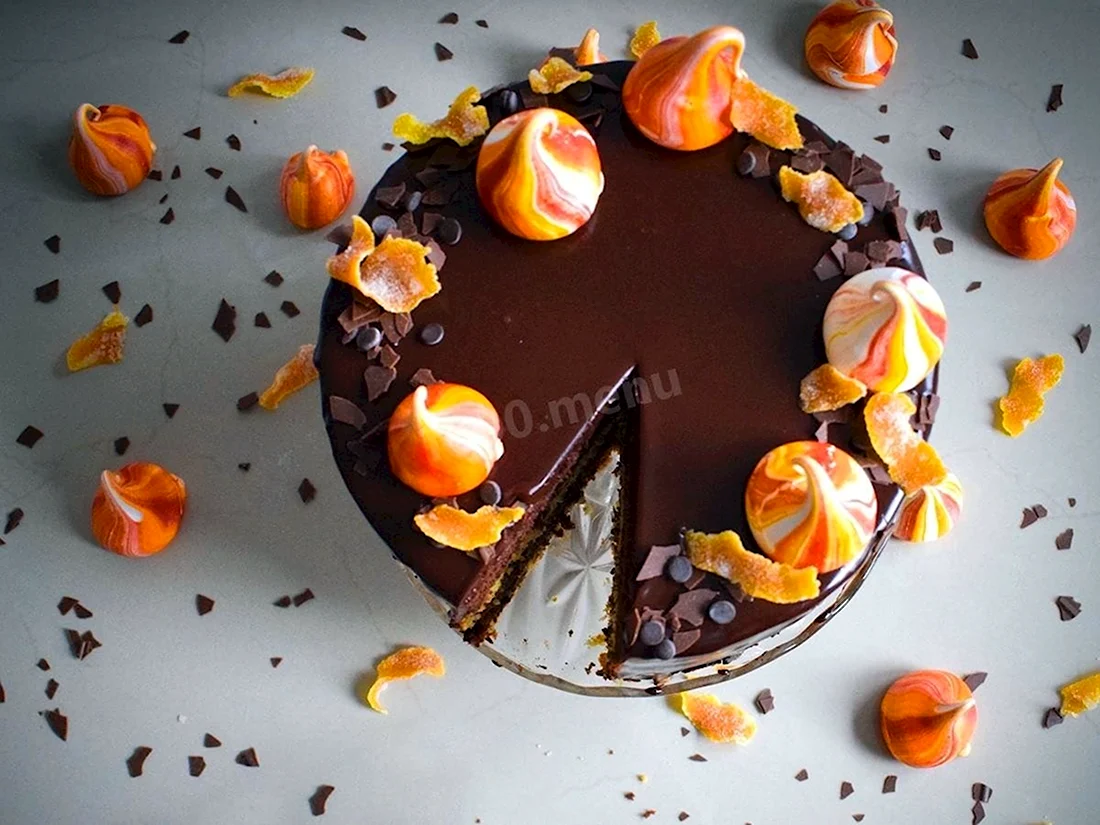 Мастерство в каждой детали: нежные апельсиновые дольки превращают обычный торт в настоящее произведение искусства.