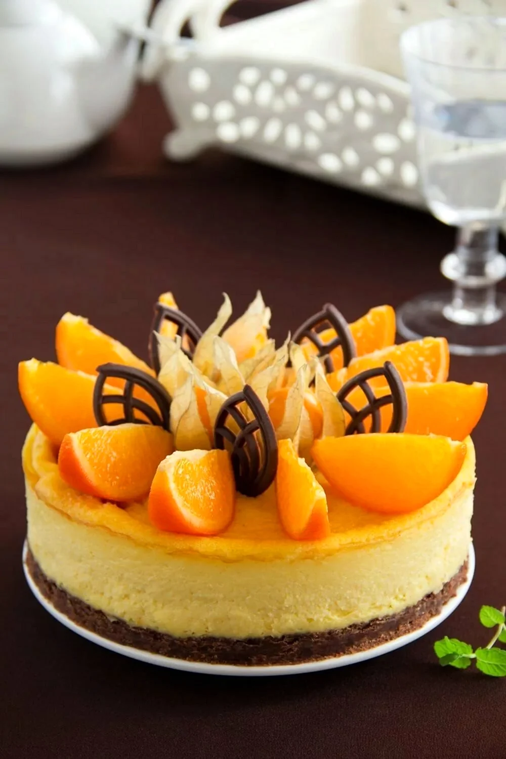 Сладкий десерт в виде торта с ярким акцентом — свежими апельсинами. Посмотрите на нежное тесто, покрытое аппетитными фруктами, и насладитесь фото вдохновляющих вариаций этого вкусного украшения.