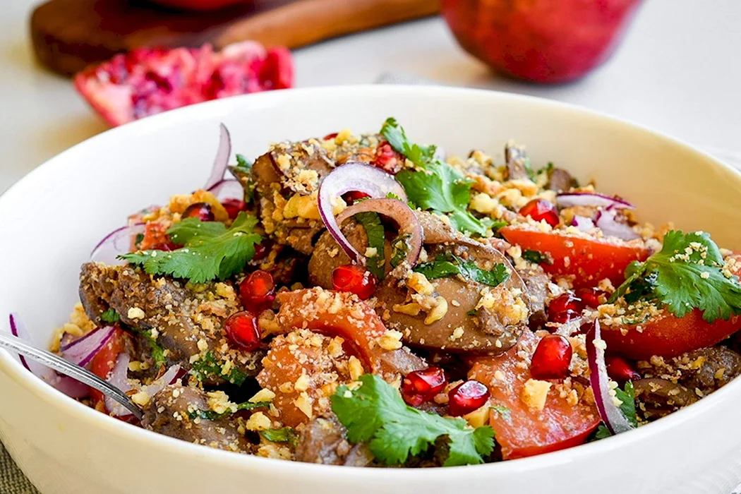 Салат с куриной печенью и гранатом