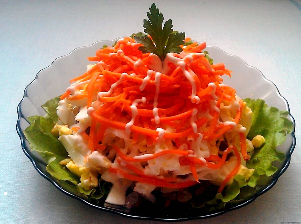 Салат Валерия с крабовыми палочками и корейской морковкой