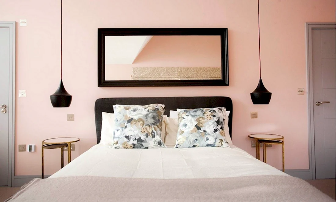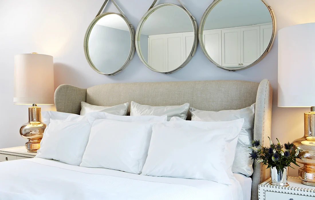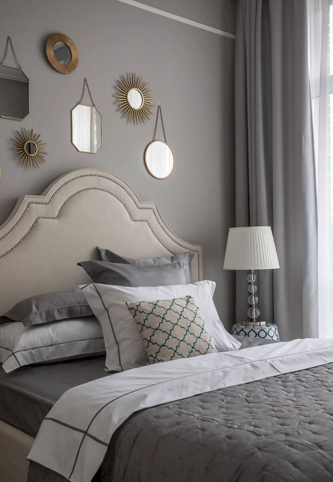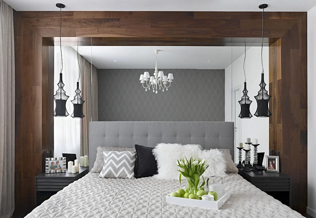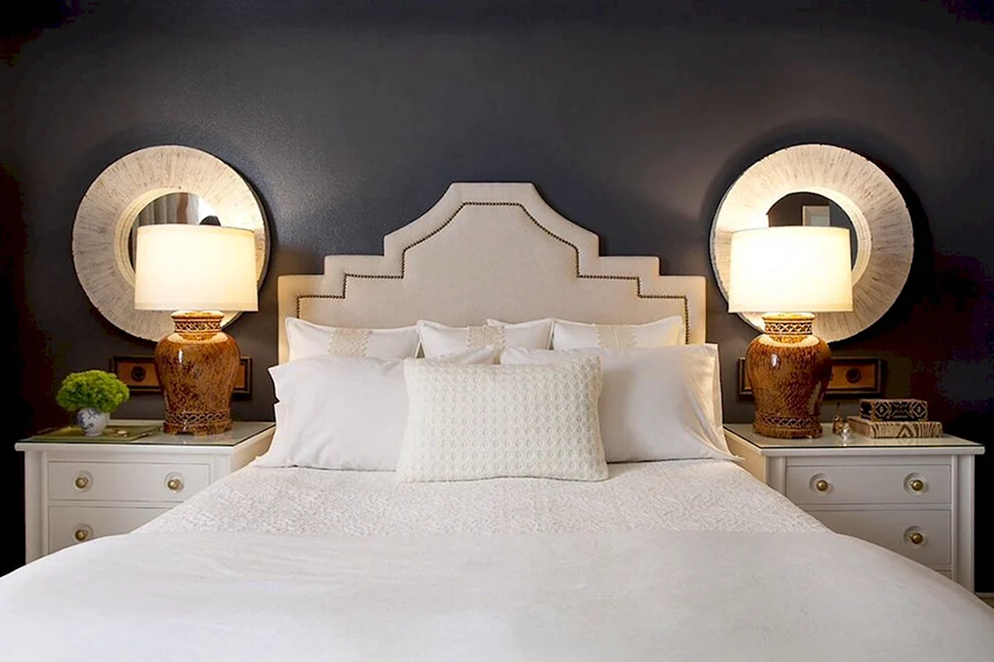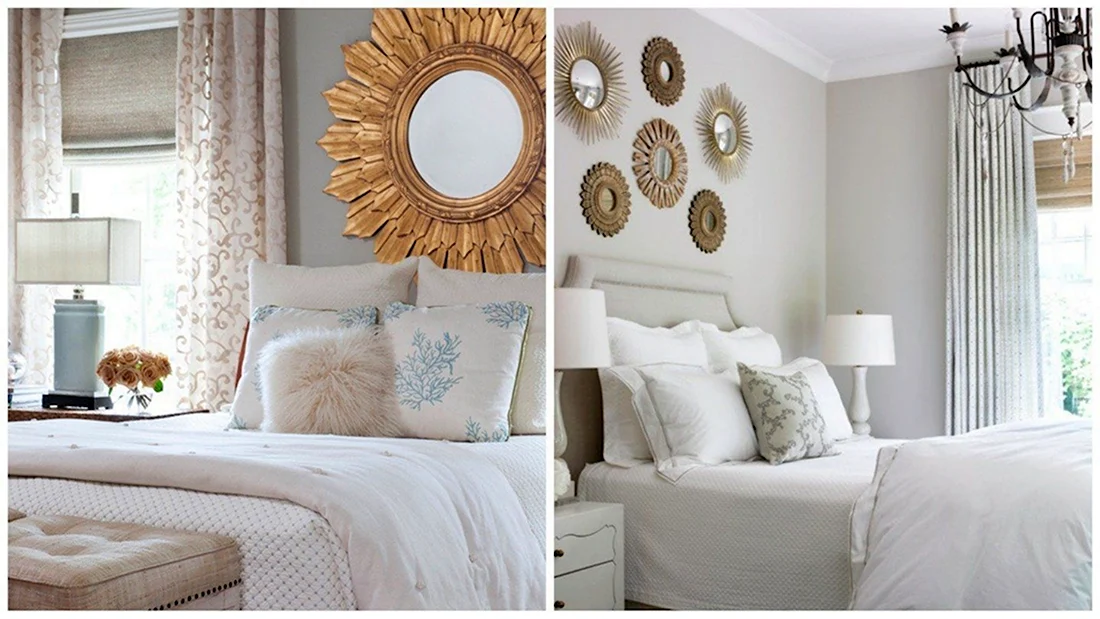Фотографии зеркал в изголовье кровати вдохновляют на создание уютной атмосферы и придают комнате особый шарм.