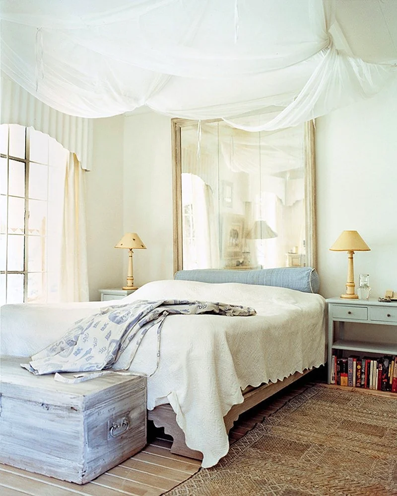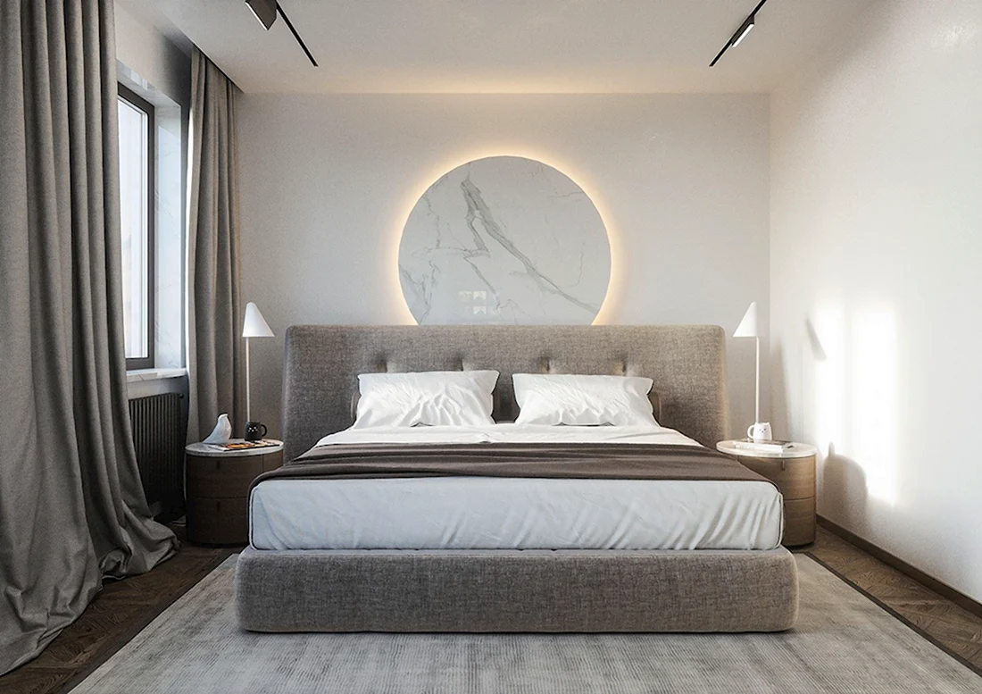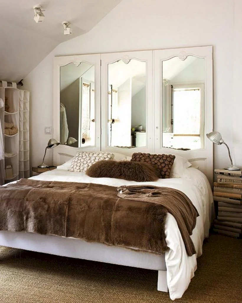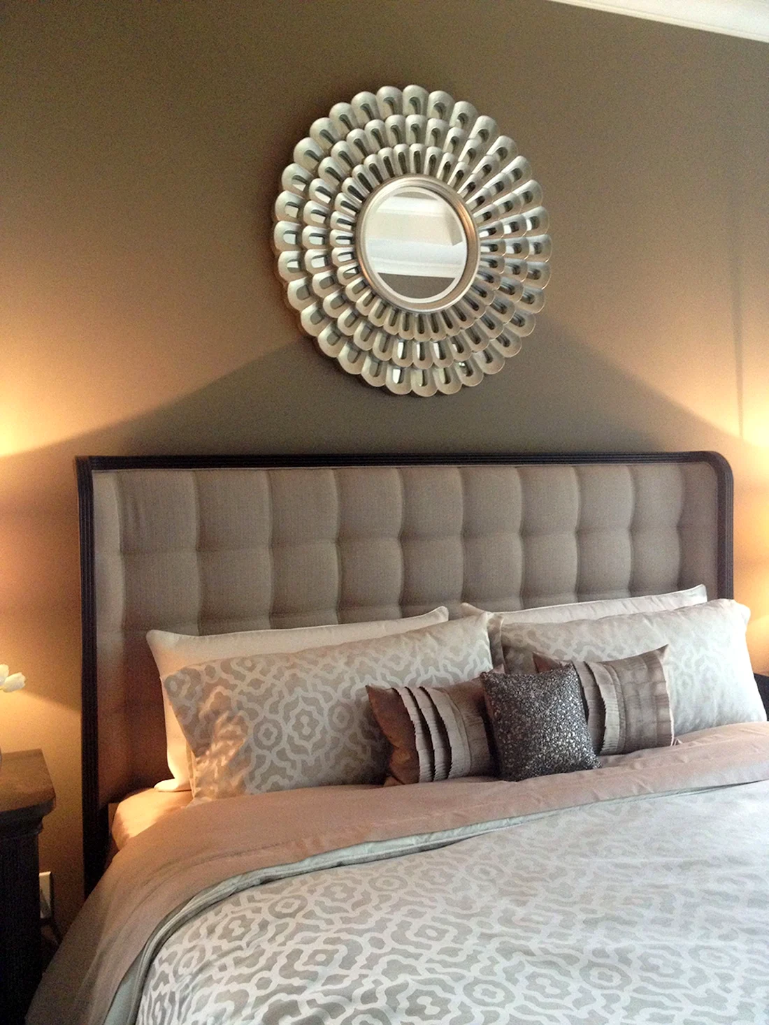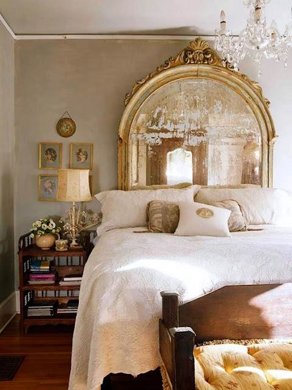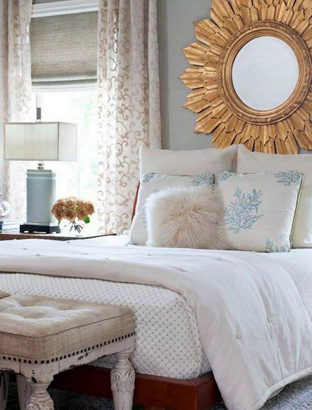 Фотографии зеркал в изголовье кровати вдохновляют на создание уютной атмосферы и придают комнате особый шарм.